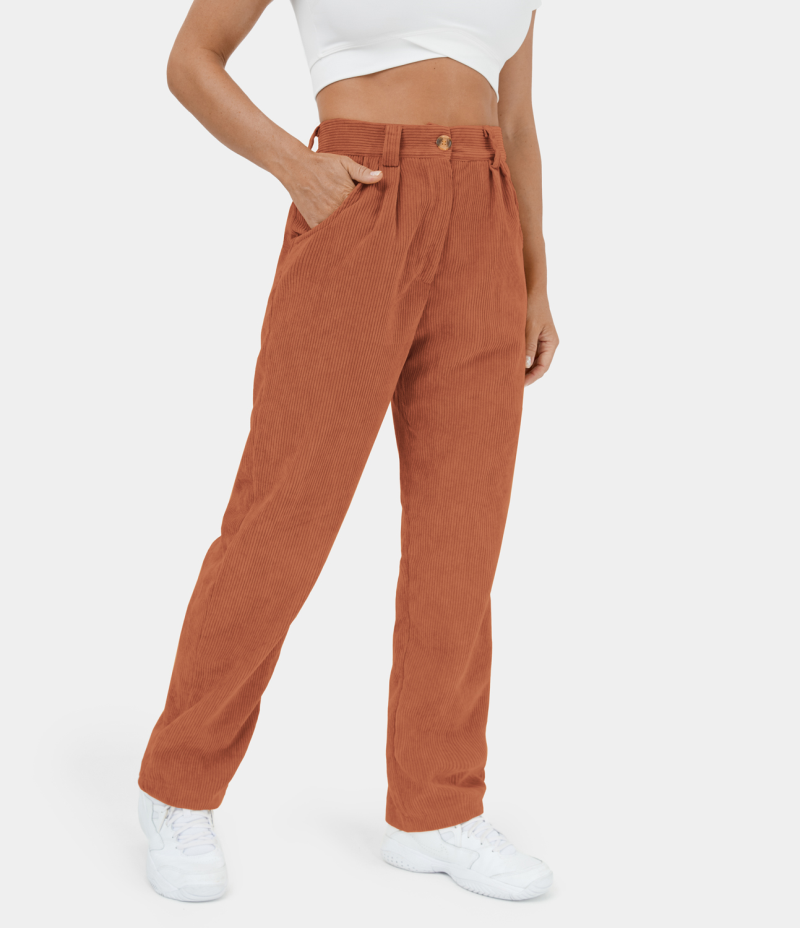 :: Halara Mid Rise Button Zipper Side Pocket Corduroy Casual Women's Pants Potter's Clay | 421709-XNK