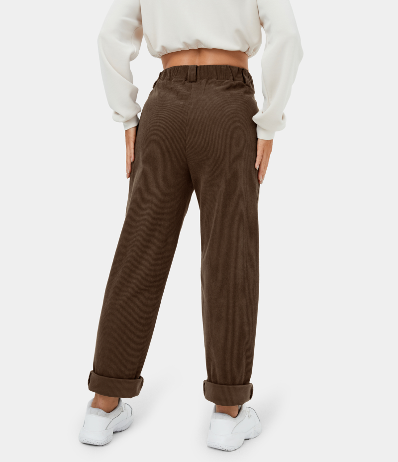 :: Halara Mid Rise Button Zipper Side Pocket Corduroy Casual Women's Pants Potting Soil | 184765-ZEF