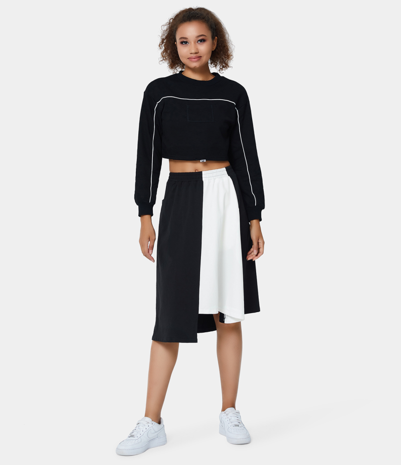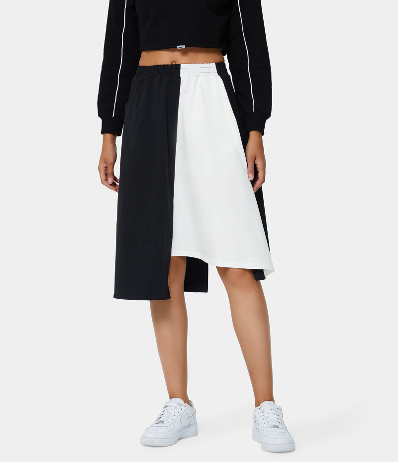 :: Halara Mid Rise Color Block Pocket Asymmetric Women's Skirts Black | 516738-WMR