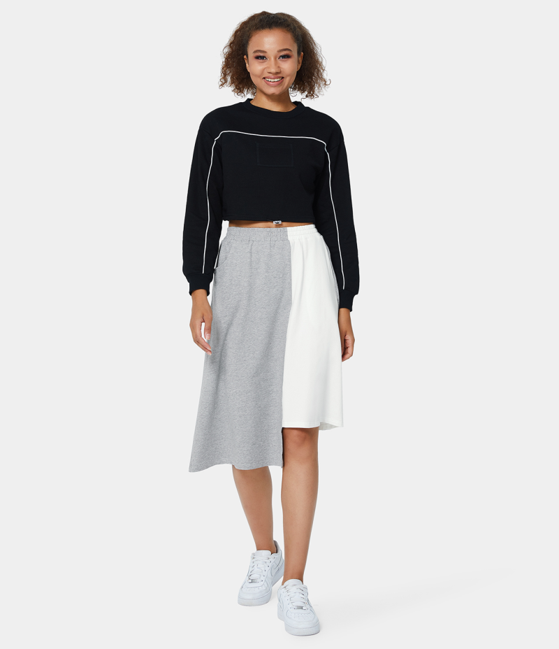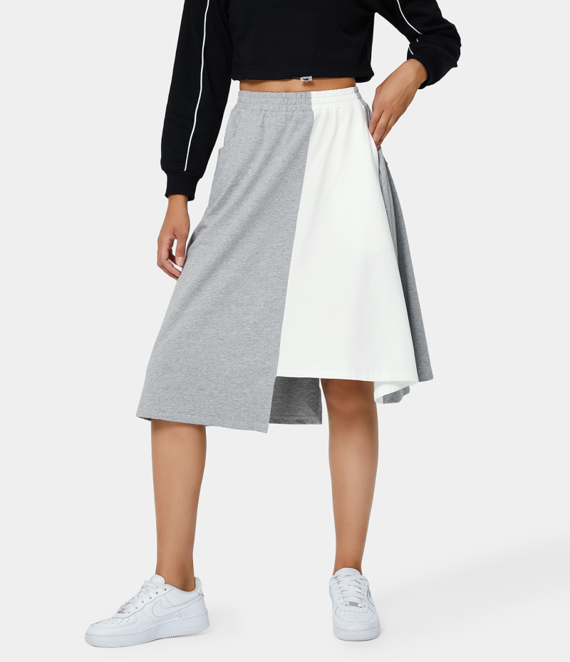:: Halara Mid Rise Color Block Pocket Asymmetric Women's Skirts Grey | 671239-ANJ