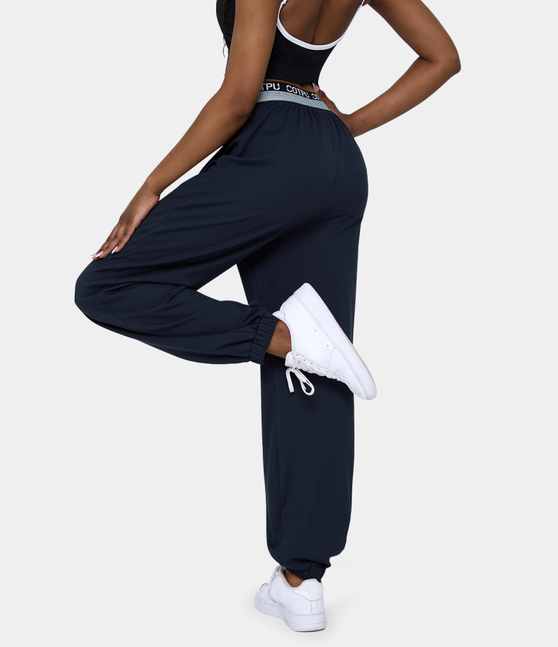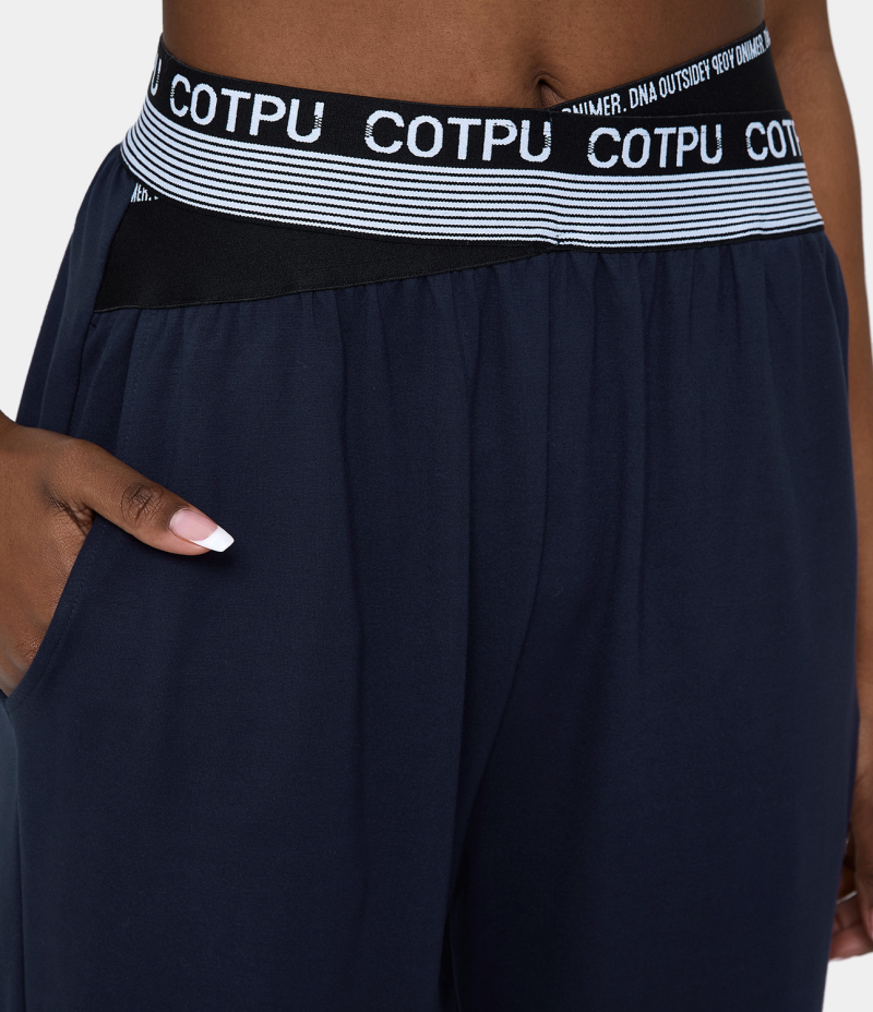 :: Halara Mid Rise Crossover Letter Print Side Pocket Women's Pants Deep Dark Blue | 458712-NFP