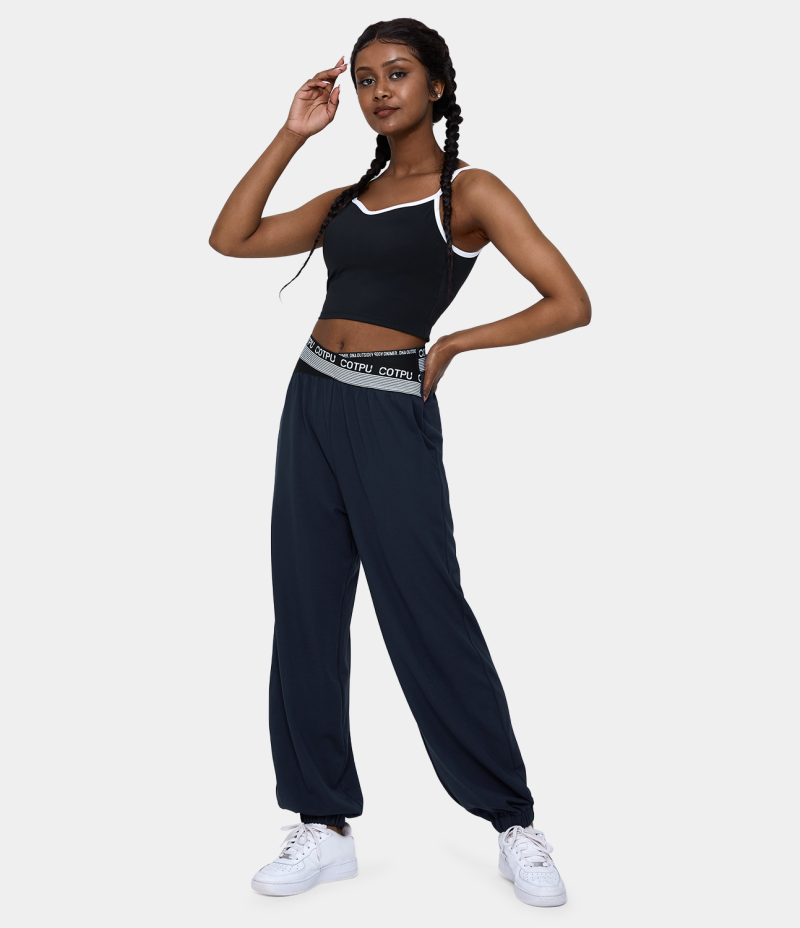 Halara Mid Rise Crossover Letter Print Side Pocket Women's Pants Deep Dark Blue | 458712-NFP