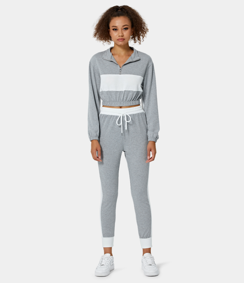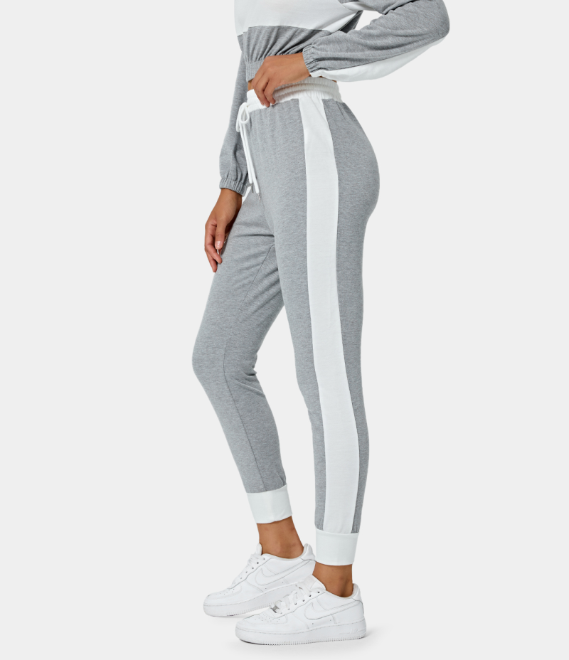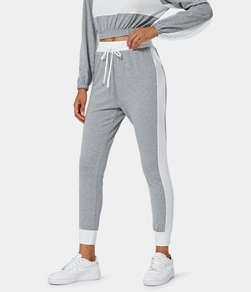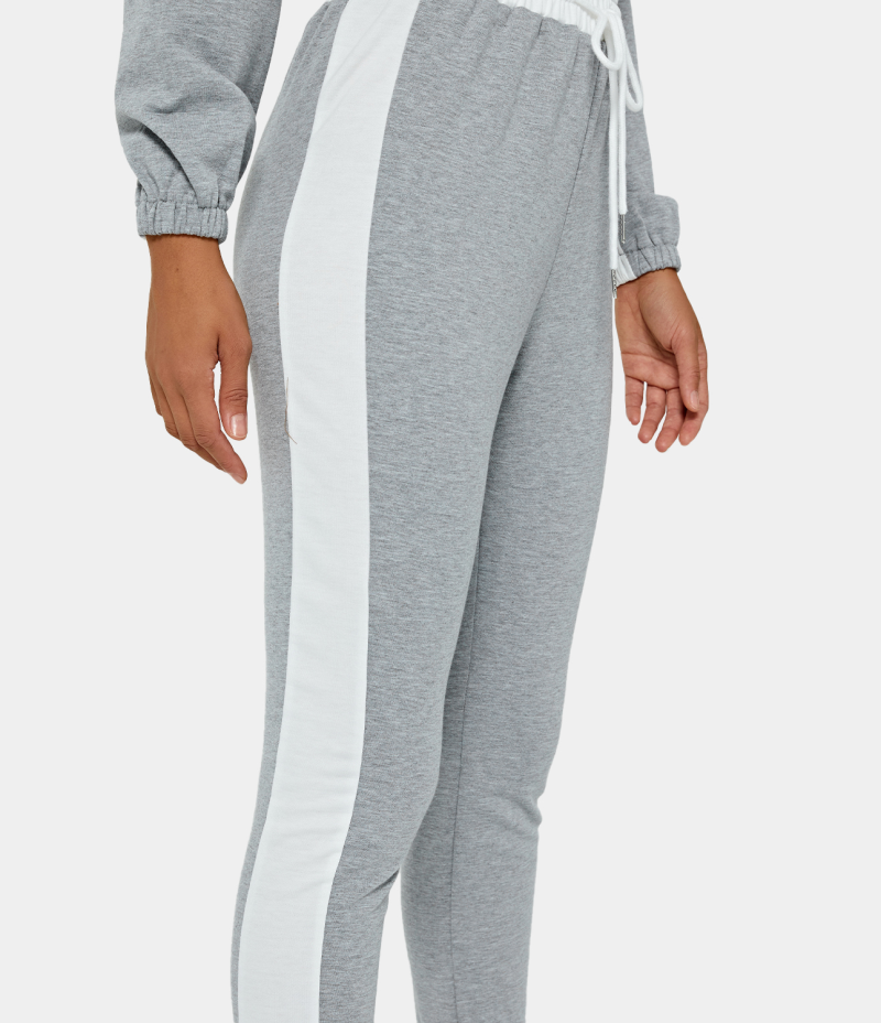 :: Halara Mid Rise Drawstring Contrast Trim Lounge Women's Pants Grey | 170526-MID