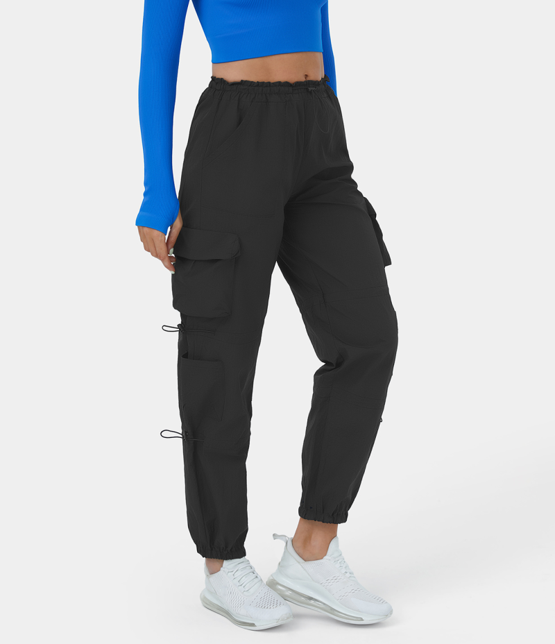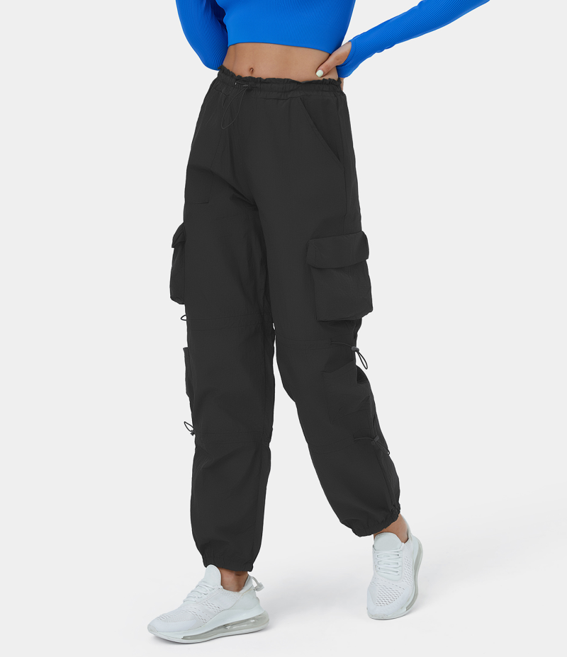 Halara Mid Rise Drawstring Multi Pockets Casual Cargo Women's Jogger Black | 135294-KMC