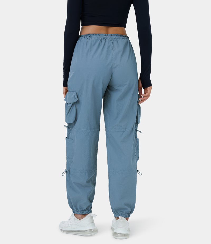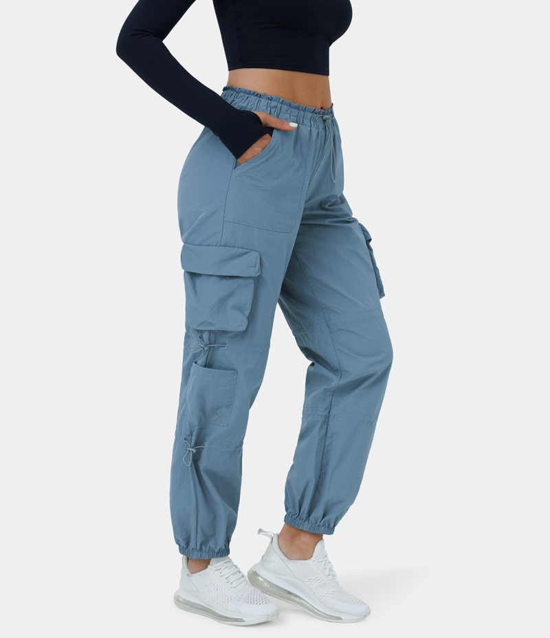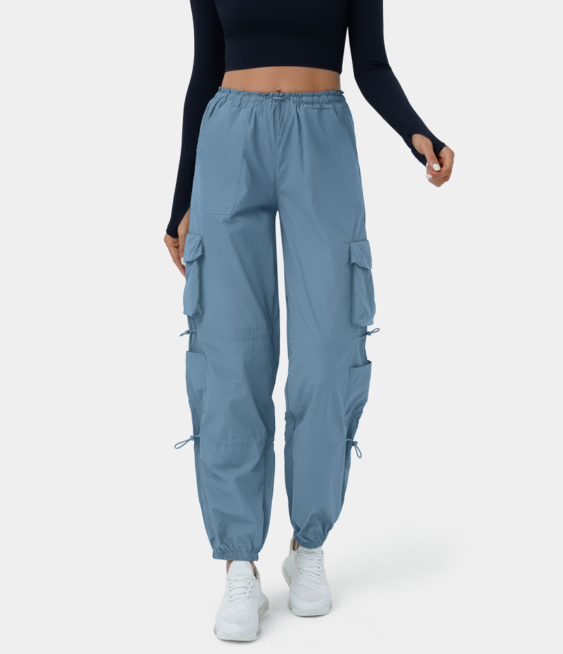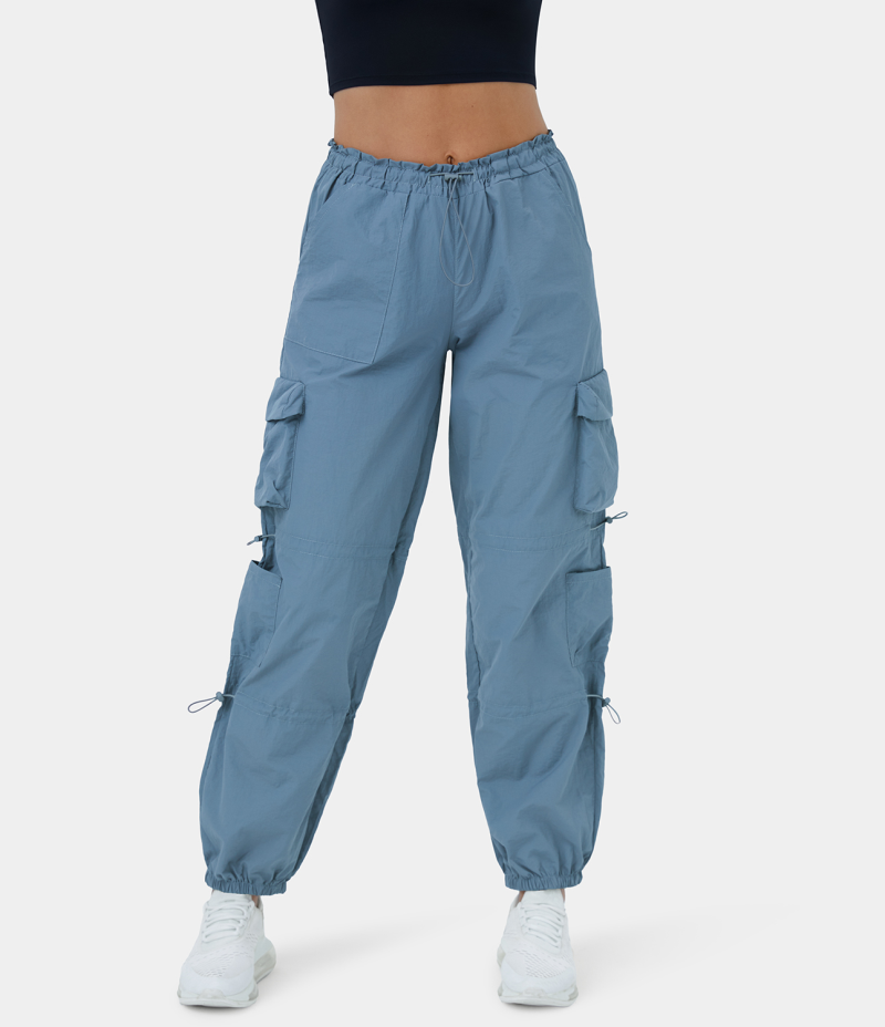 :: Halara Mid Rise Drawstring Multi Pockets Casual Cargo Women's Jogger Blue Shadow | 458637-FCU