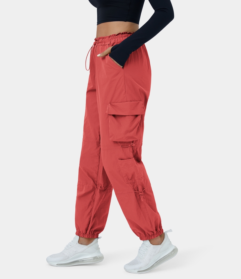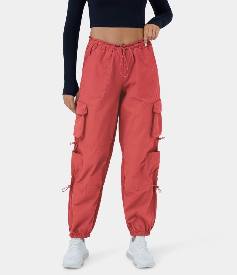 :: Halara Mid Rise Drawstring Multi Pockets Casual Cargo Women's Jogger Cranberry | 497350-TRD