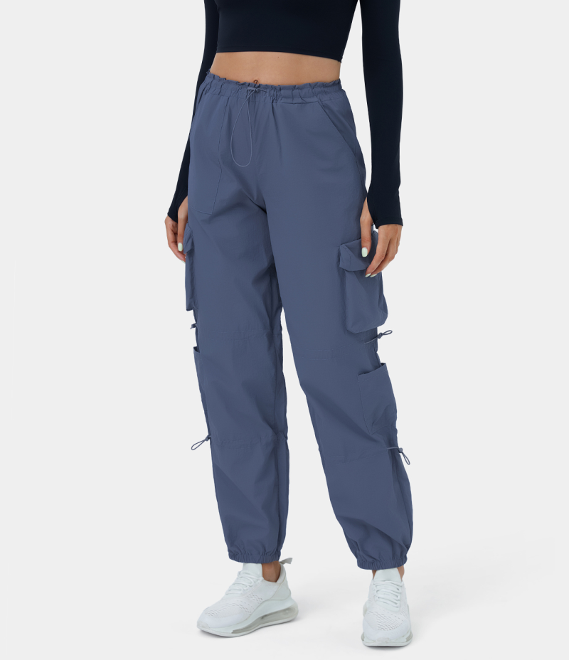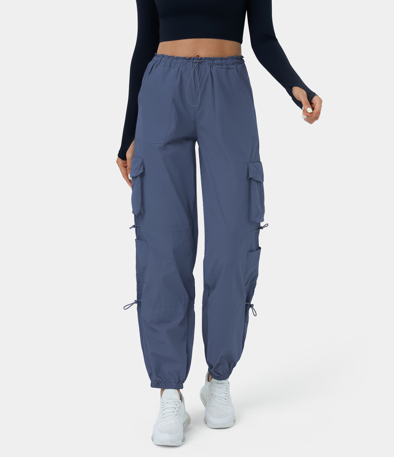 :: Halara Mid Rise Drawstring Multi Pockets Casual Cargo Women's Jogger Gray Blue | 359610-IKX