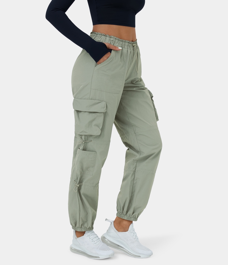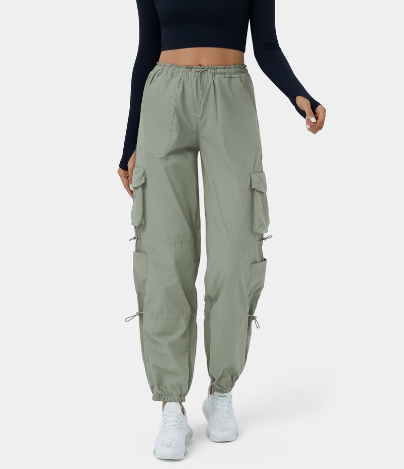 :: Halara Mid Rise Drawstring Multi Pockets Casual Cargo Women's Jogger Seagrass | 894236-URT