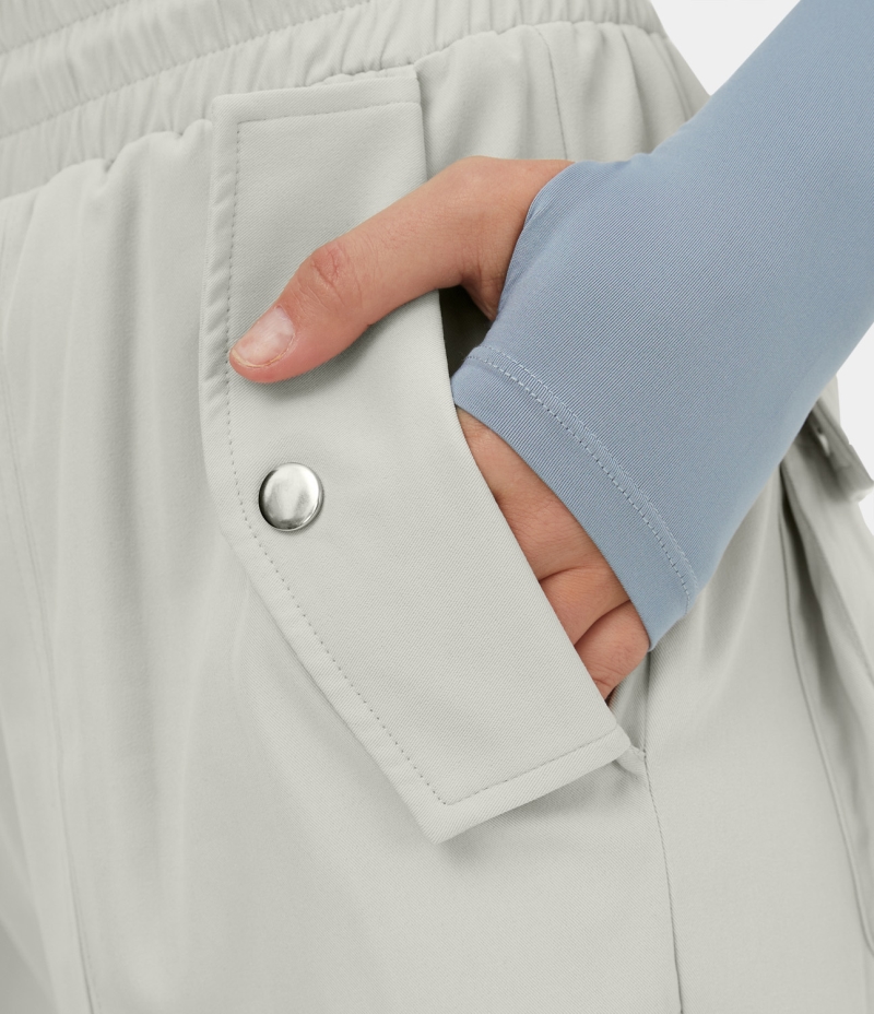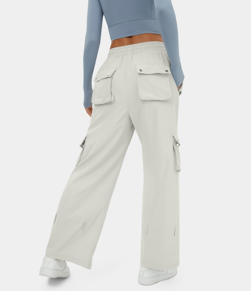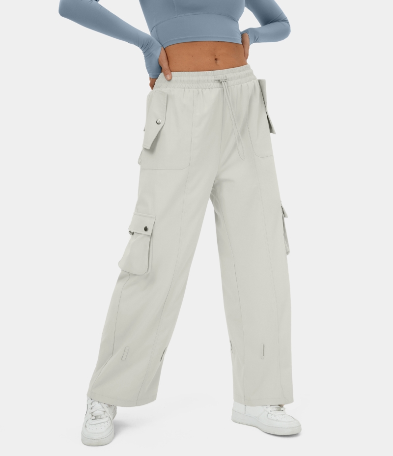 :: Halara Mid Rise Drawstring Multiple Pockets Casual Cargo Women's Pants White Onyx | 906852-MEQ