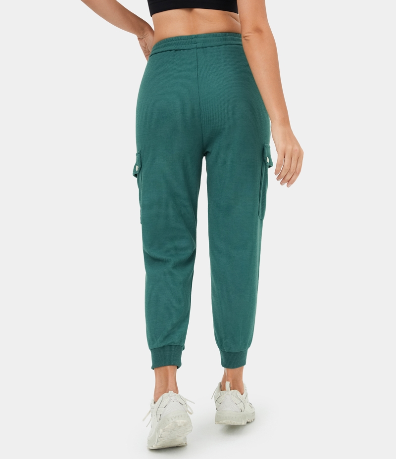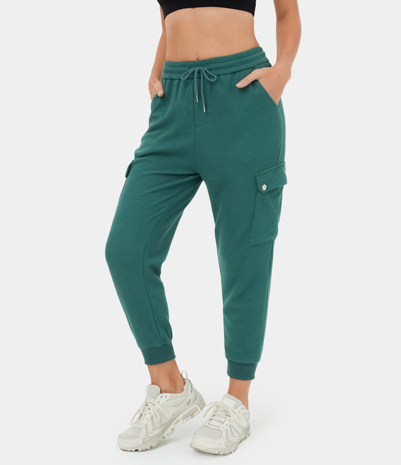 :: Halara Mid Rise Drawstring Multiple Pockets Waffle Casual Cargo Women's Jogger Bayberry | 794602-DBT