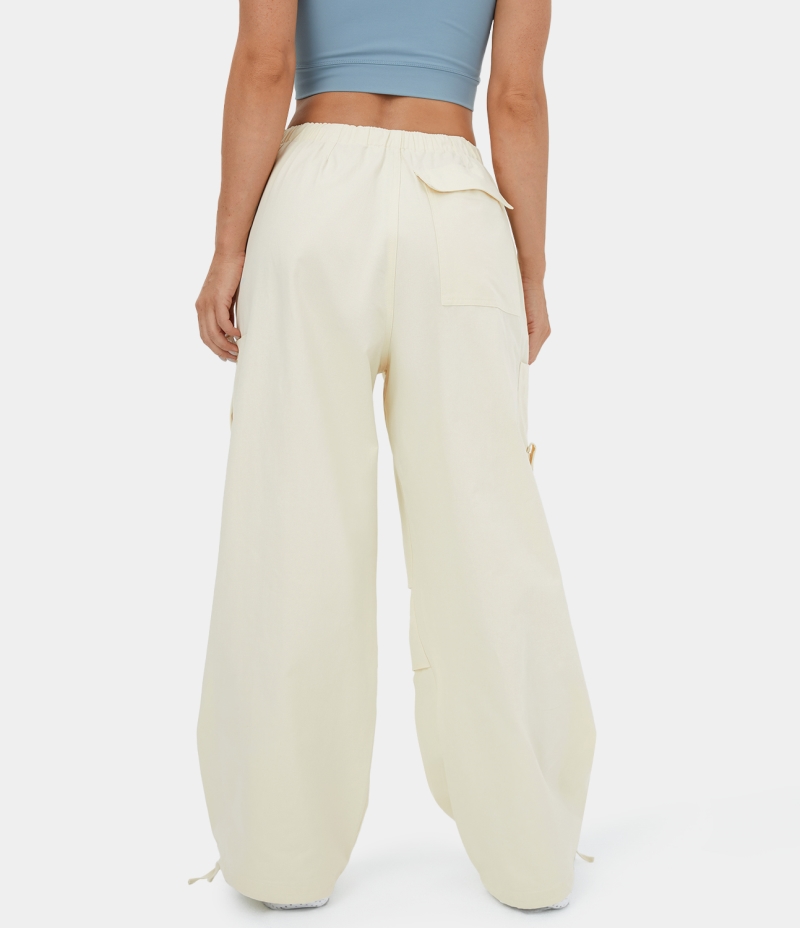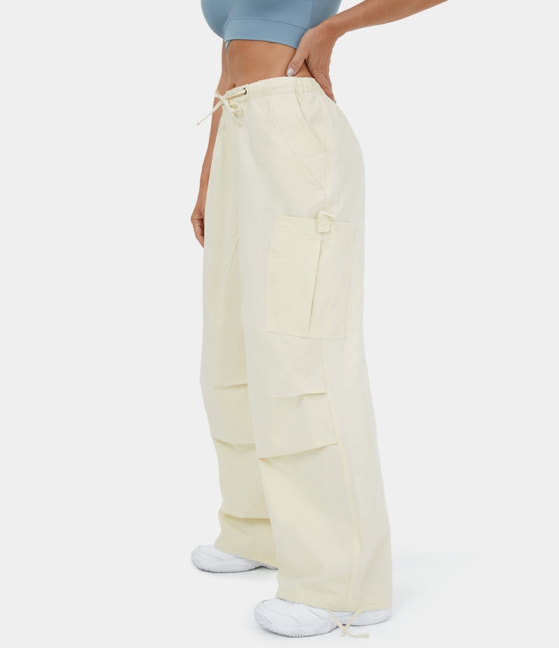 :: Halara Mid Rise Drawstring Multiple Pockets Wide Leg Casual Women's Jogger Vanilla Ice | 296714-WZO