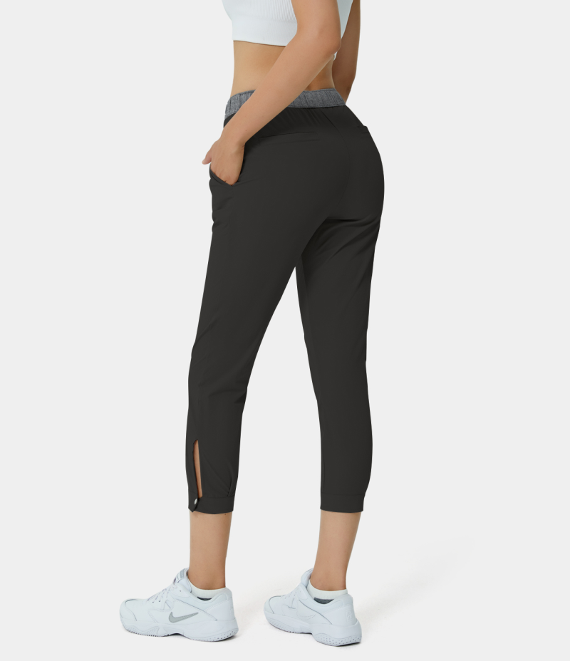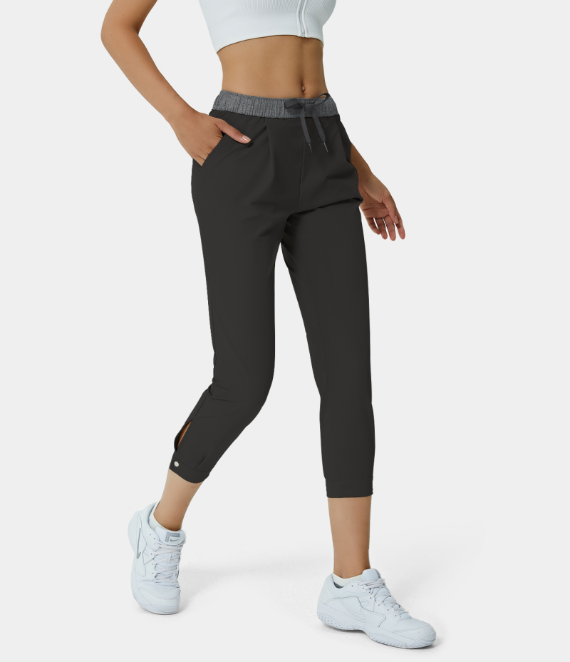 :: Halara Mid Rise Drawstring Side Pocket Color Block Golf Women's Pants Black | 754690-YNX
