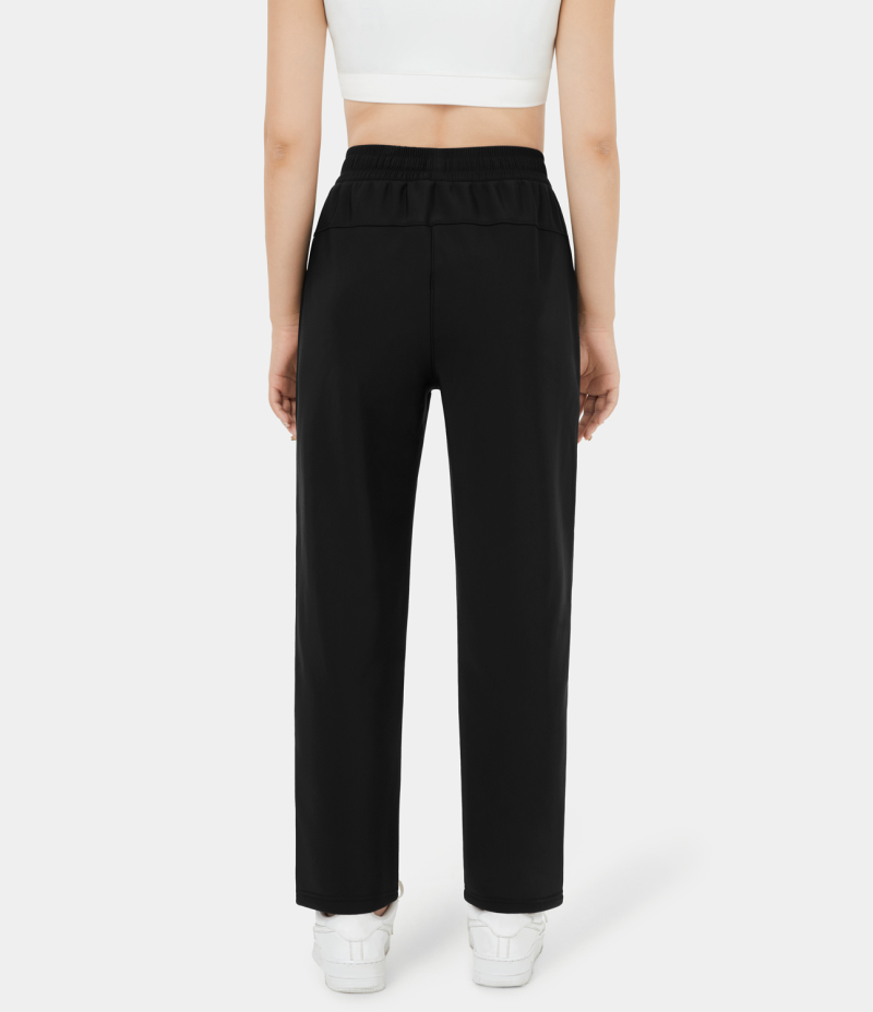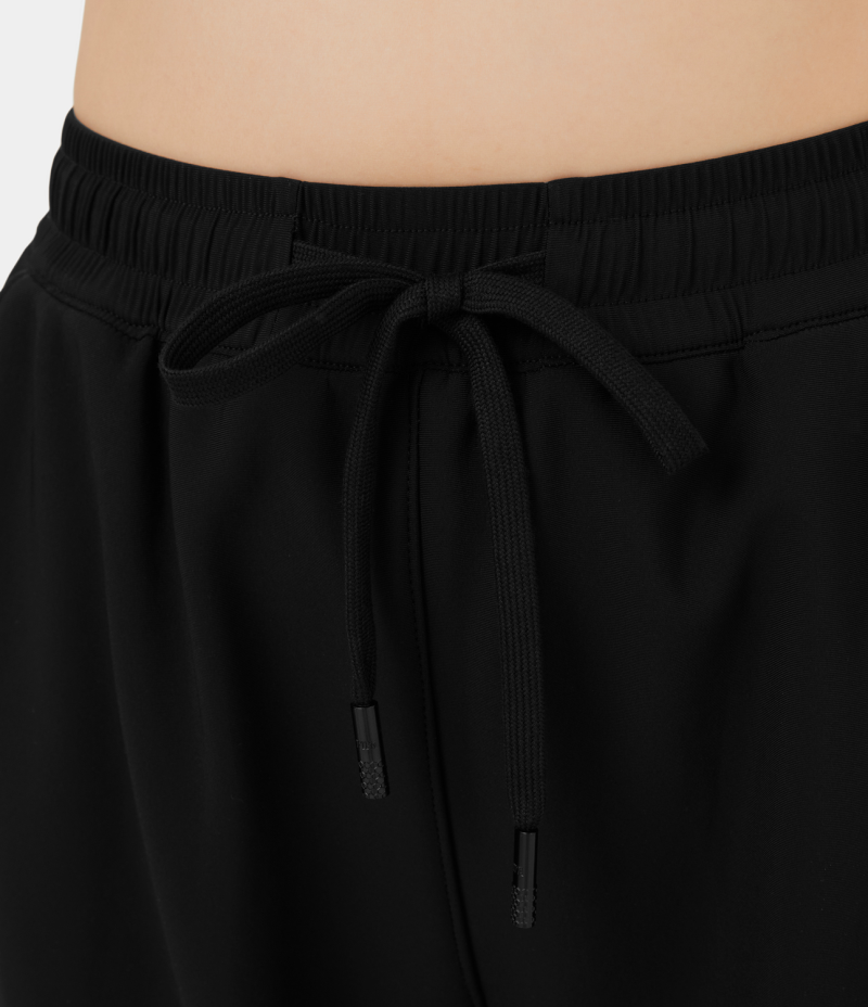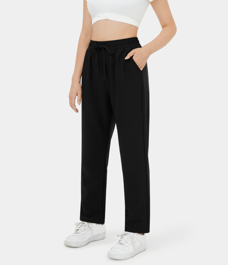 :: Halara Mid Rise Drawstring Side Pocket Fleece Casual Women's Pants Black | 409185-AGE