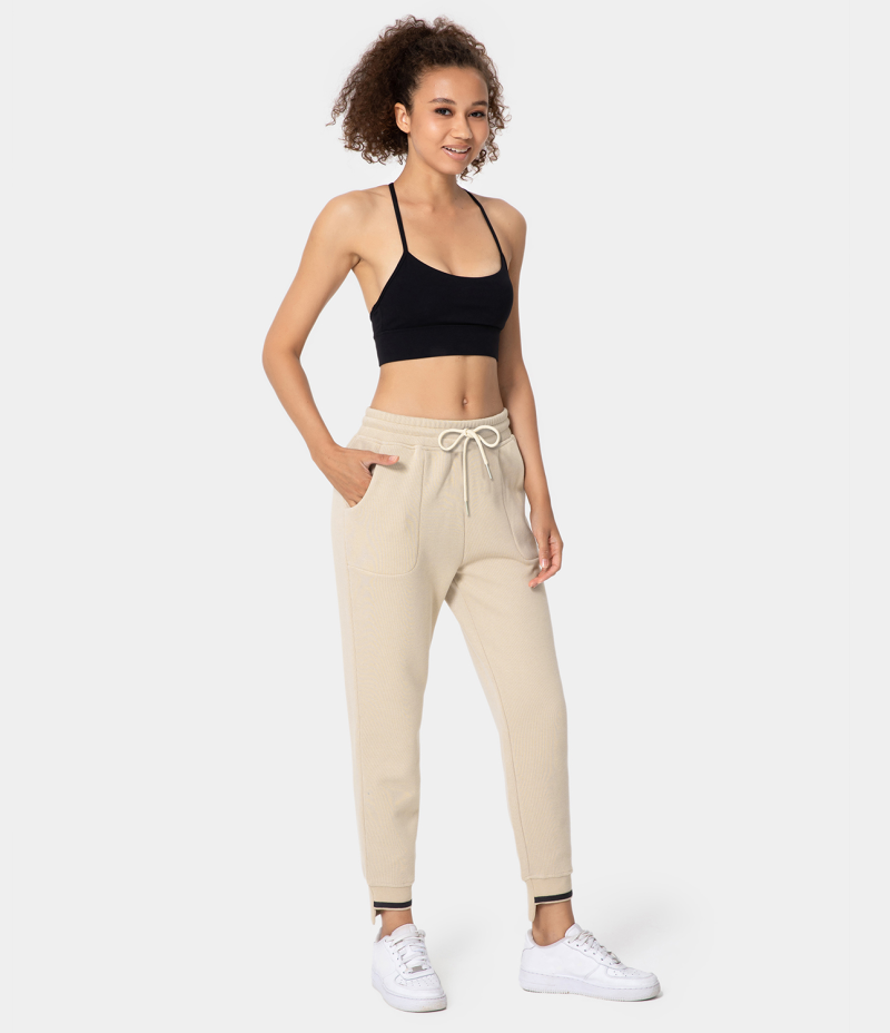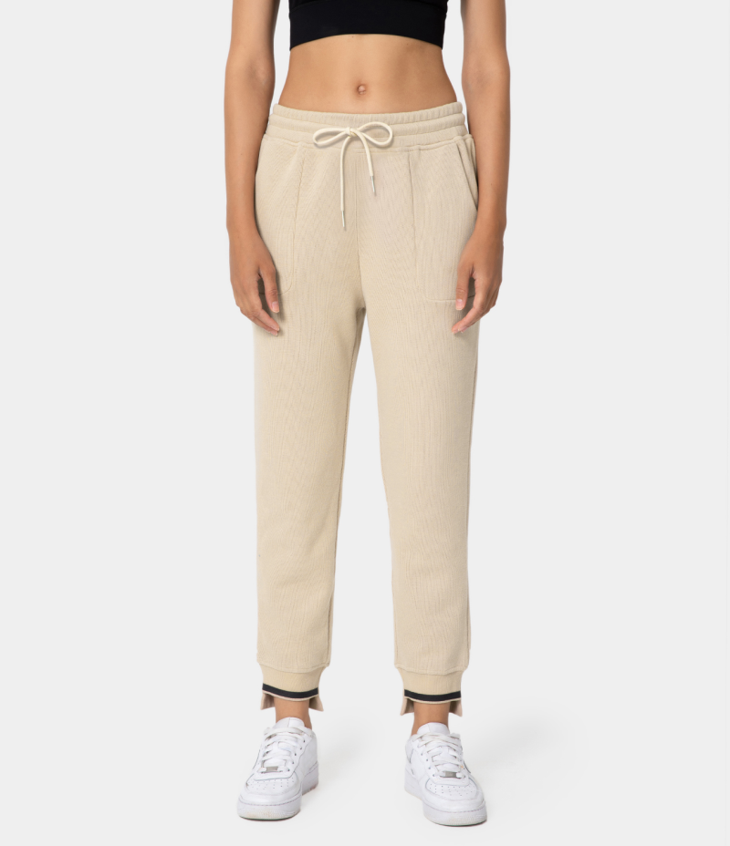 Halara Mid Rise Drawstring Side Pocket Lounge Women's Sweatpants Khaki | QIVXSHP-63