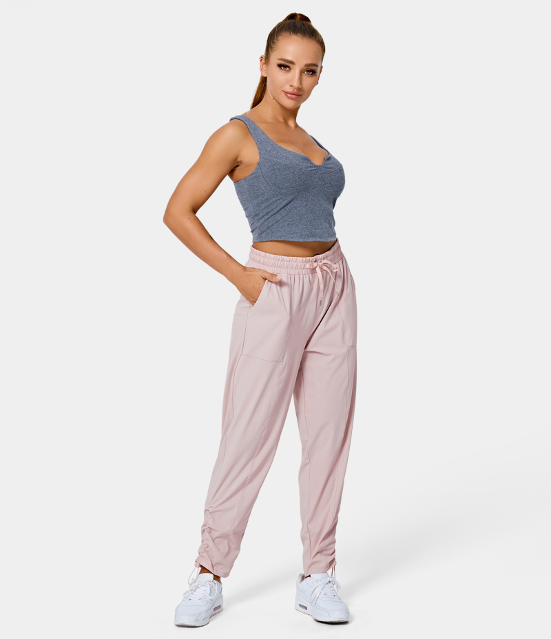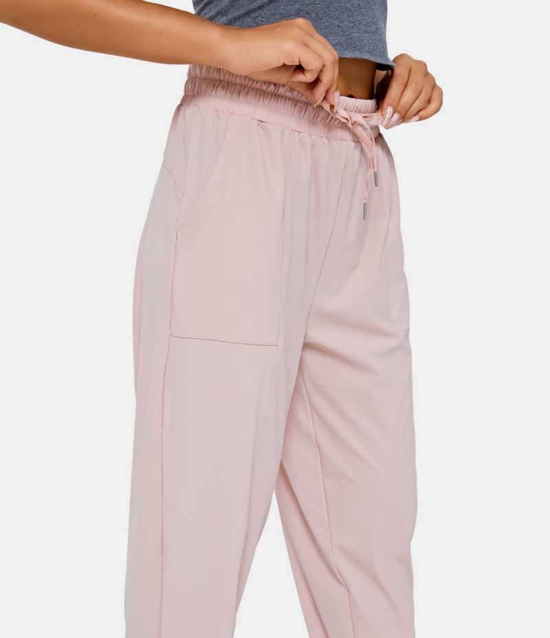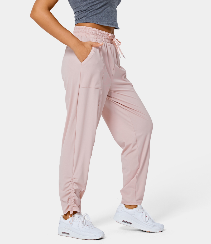 :: Halara Mid Rise Drawstring Side Pocket Plain Lounge Women's Pants Lilac Pink | 648097-SBL