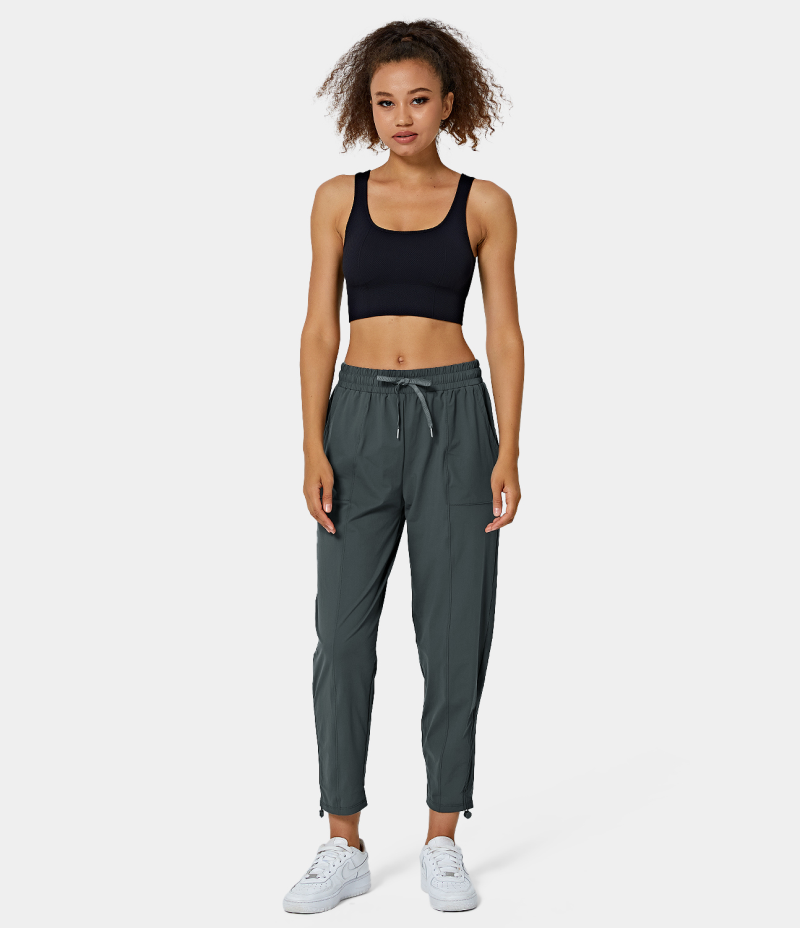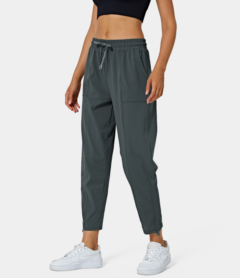 :: Halara Mid Rise Drawstring Side Pocket Plain Lounge Women's Pants Smokey Grey | 841237-WFN