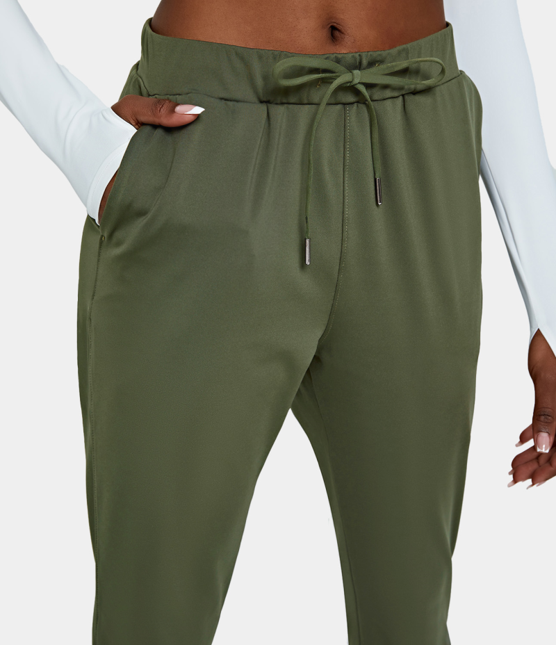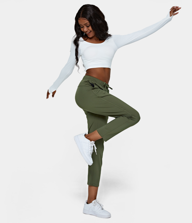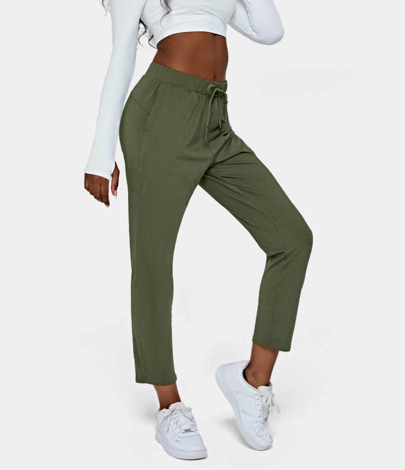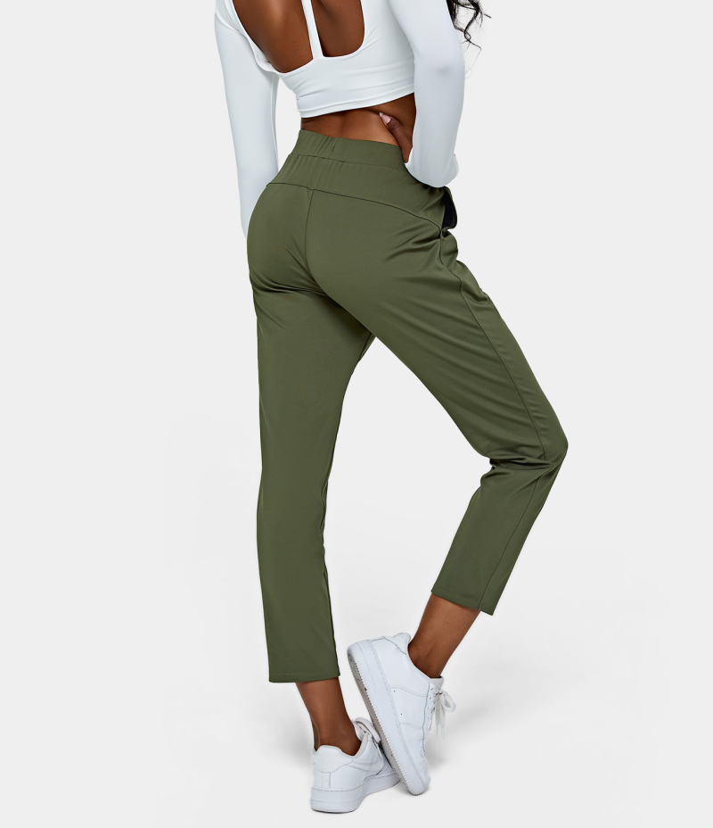 :: Halara Mid Rise Drawstring Side Pocket Plain Women's Pants Grey Green | 418360-KRC