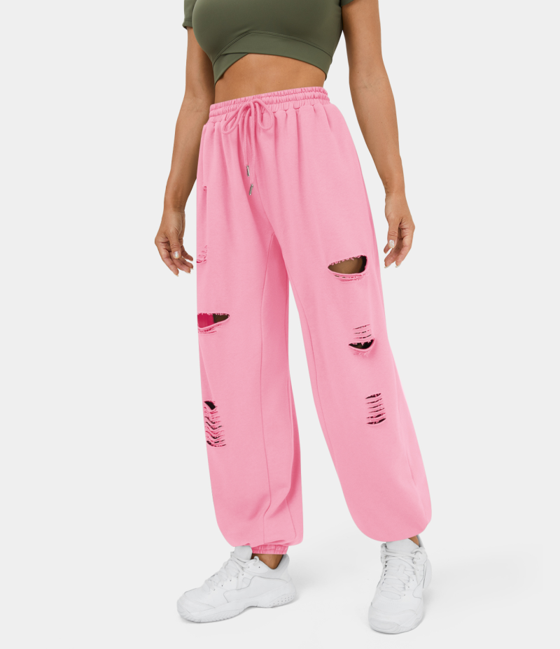 Halara Mid Rise Drawstring Side Pocket Ripped Casual Women's Jogger Pink | 325698-NYO