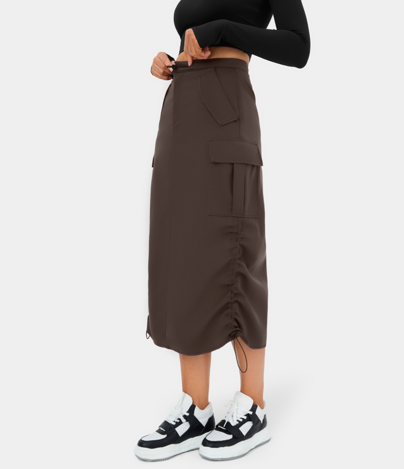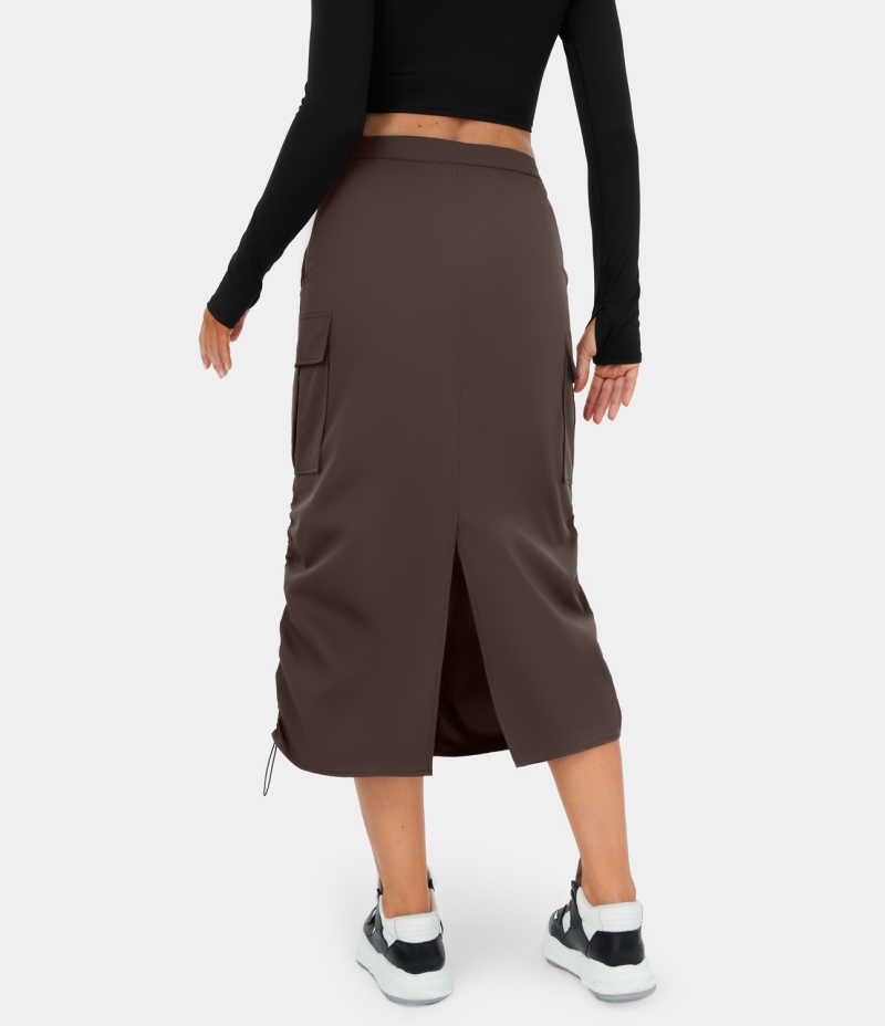 :: Halara Mid Rise Drawstring Zipper Multiple Pockets Split Midi Casual Cargo Women's Skirts Shopping Bag | 374890-CYV
