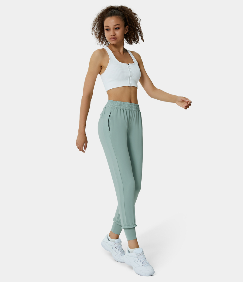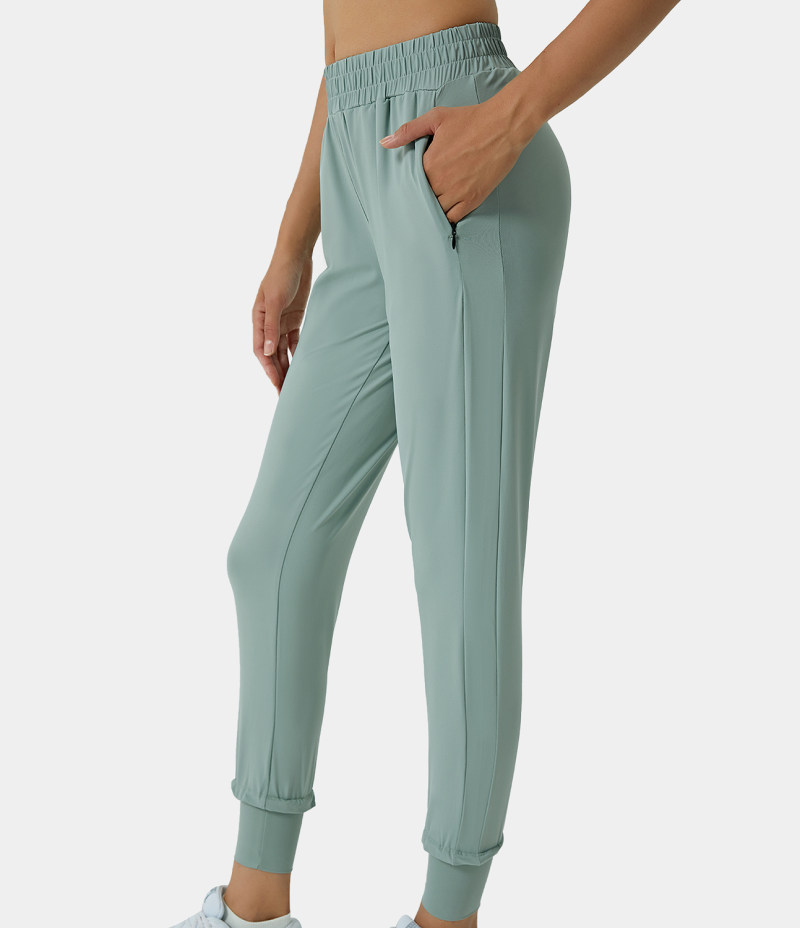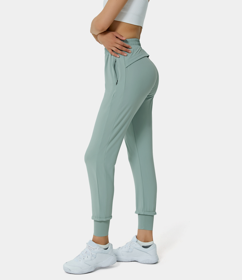 :: Halara Mid Rise Elastic Side Pocket Slimming Women's Jogger Pistachio | 371542-UJM