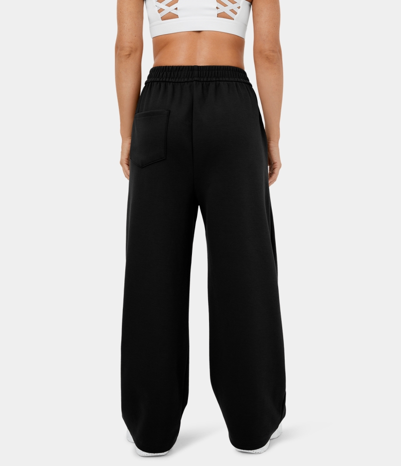 Halara Mid Rise Elastic Waistband Pocket Wide Leg Casual Women's Jogger Black | 938614-EFO