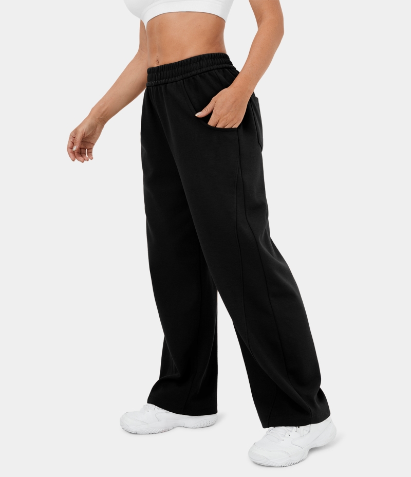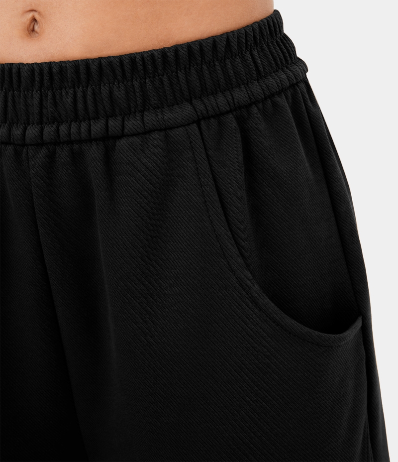 :: Halara Mid Rise Elastic Waistband Pocket Wide Leg Casual Women's Jogger Black | 938614-EFO