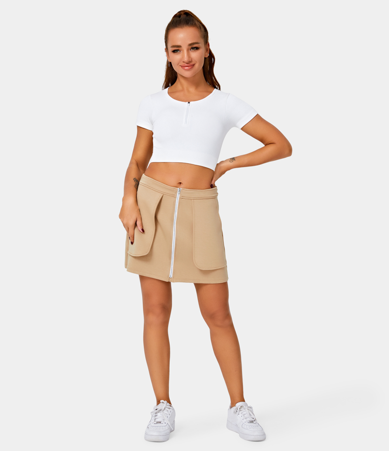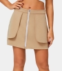 :: Halara Mid Rise Front Zip Side Pocket Plain Mini Women's Skirts Khaki | 934821-ENZ