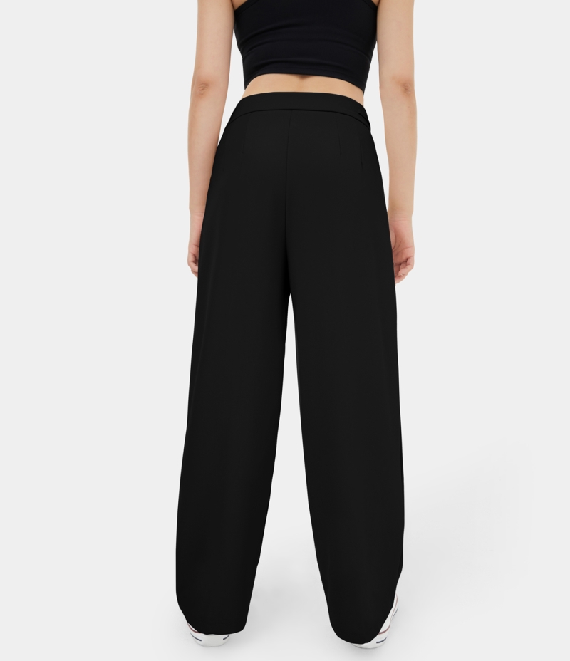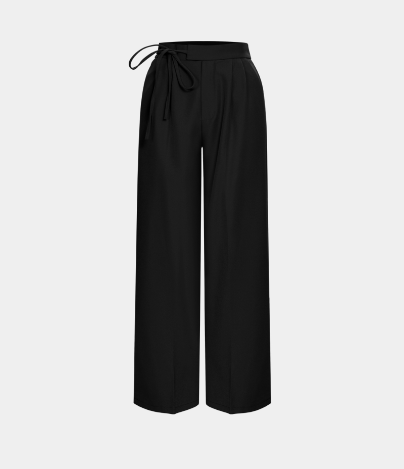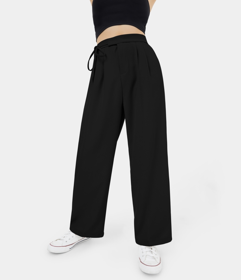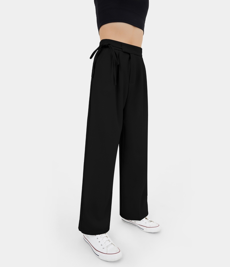 Halara Mid Rise Lace Up Zipper Side Pocket Straight Leg Casual Women's Pants Black | 746259-MXR