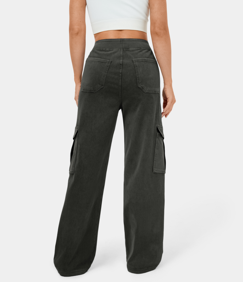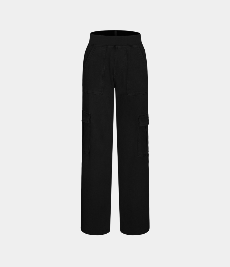 :: Halara Mid Rise Multiple Pockets Straight Leg Stretchy Knit Denim Casual Cargo Women's Pants Black | 512894-PYW