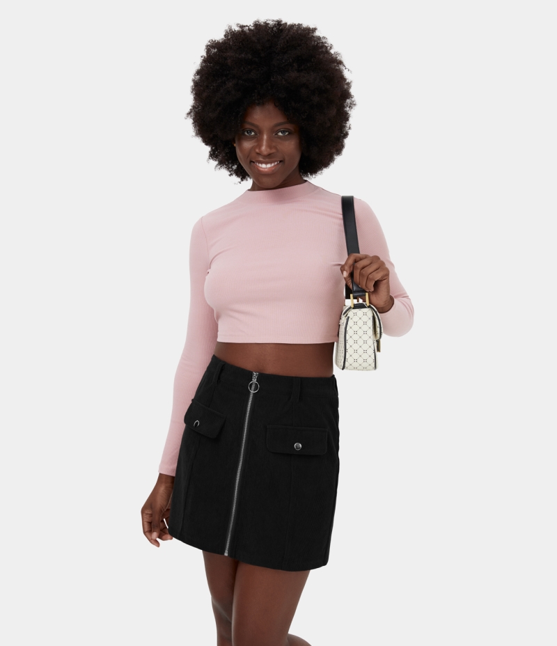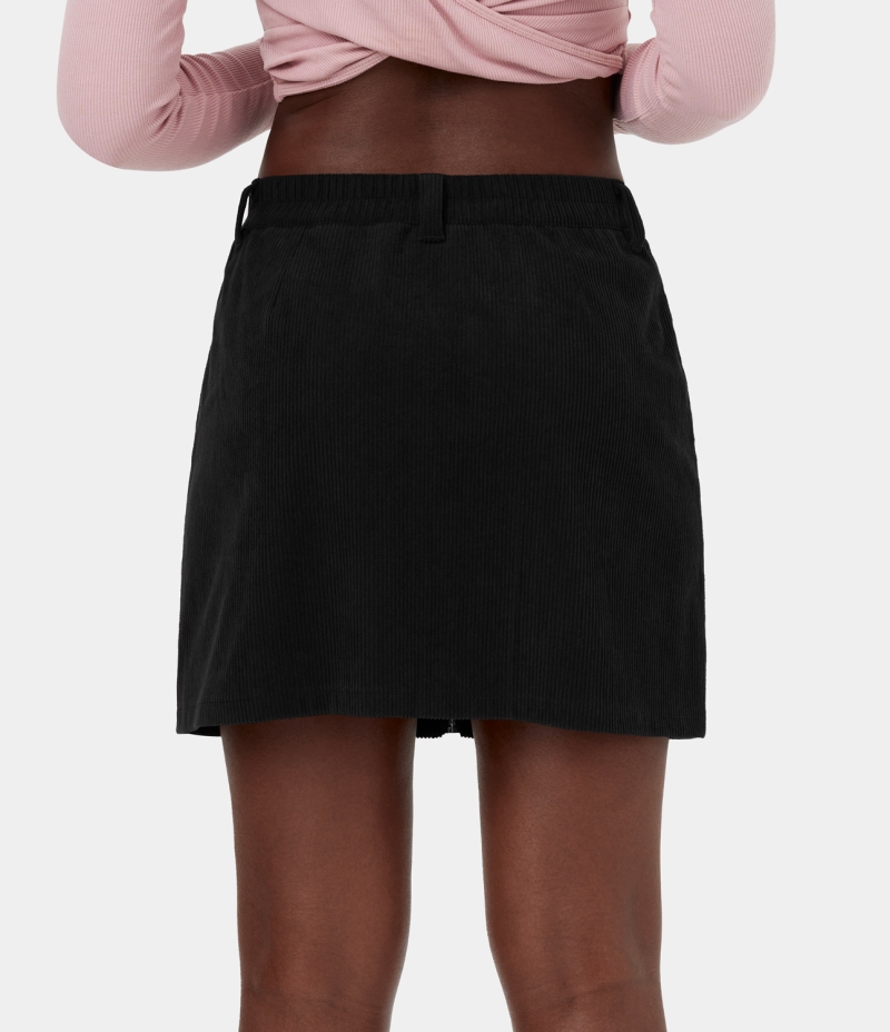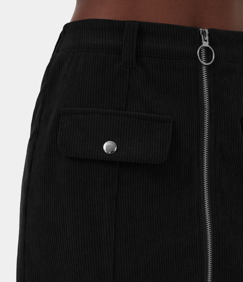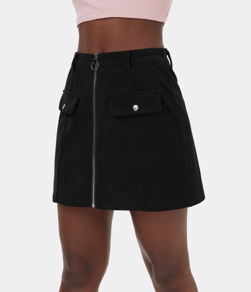 :: Halara Mid Rise O Ring Zipper Corduroy Mini Casual Women's Skirts Black | 456871-BSR