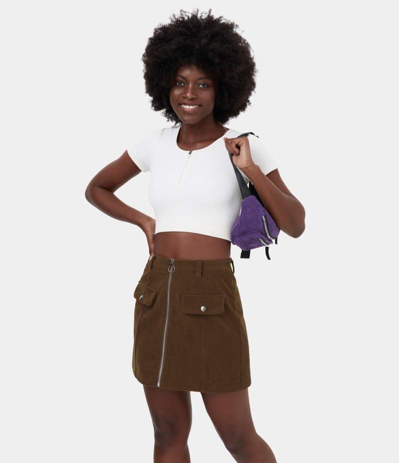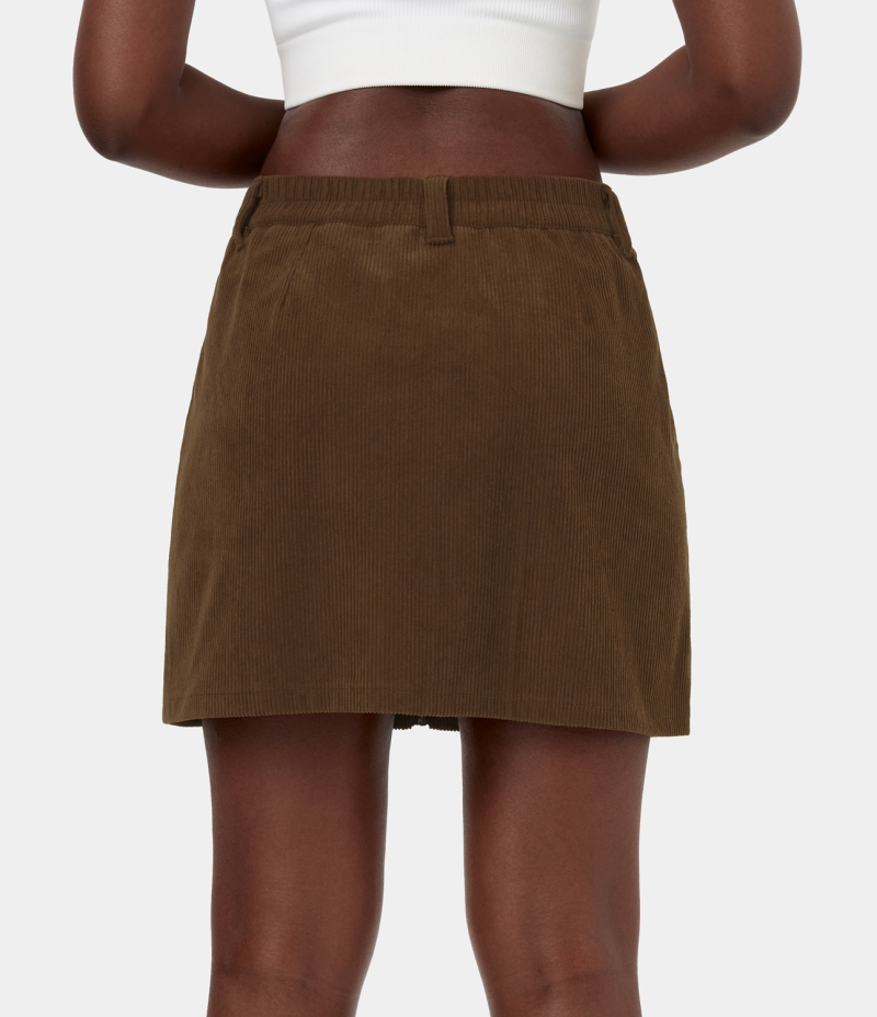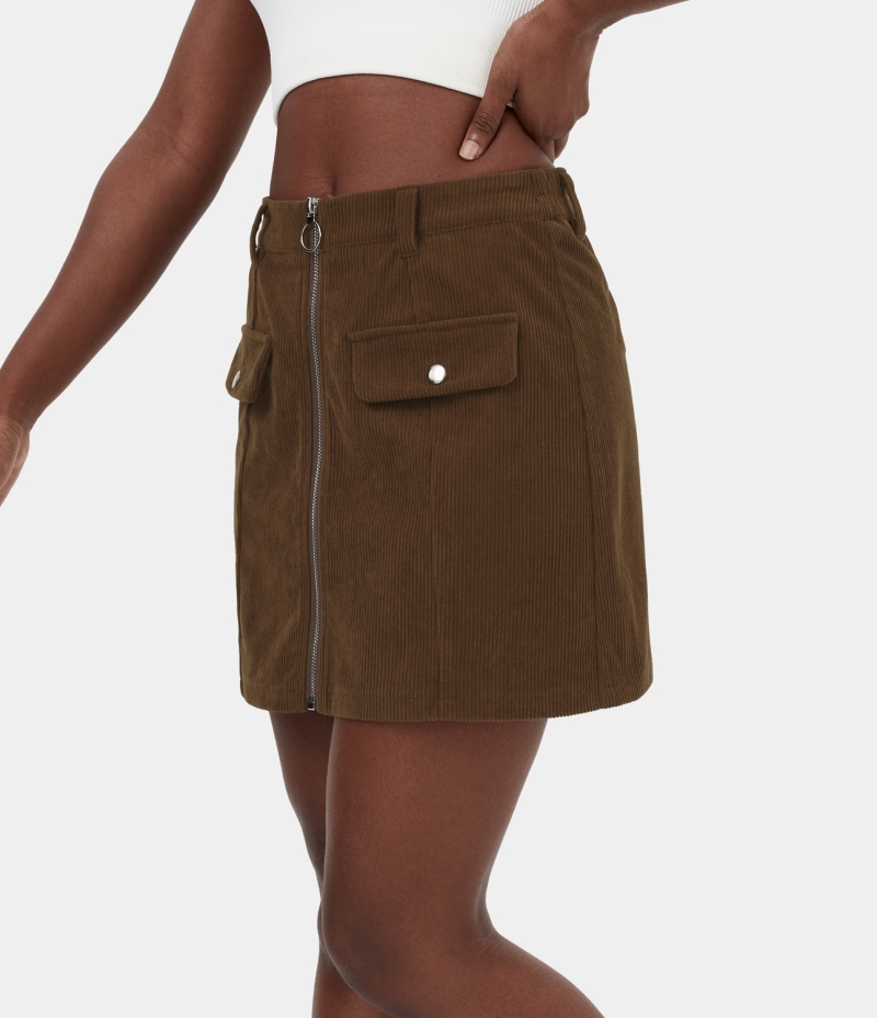 :: Halara Mid Rise O Ring Zipper Corduroy Mini Casual Women's Skirts Fondue Fudge | KFSETWL-89