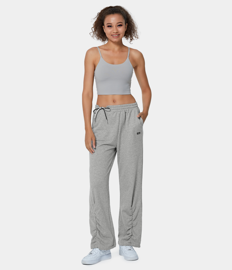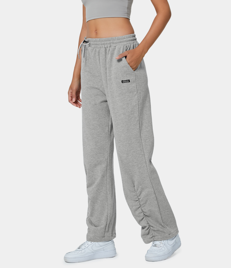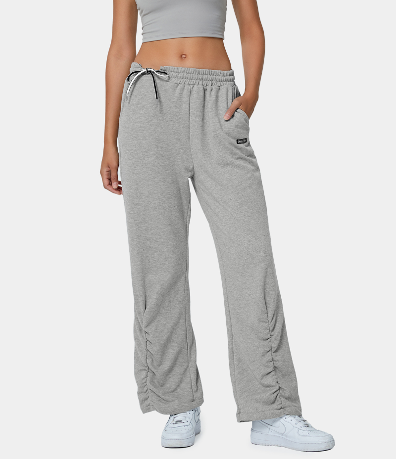 :: Halara Mid Rise Pocket Side Drawstring Ankle Ruched Wide Leg Women's Pants Grey | 740915-KRB