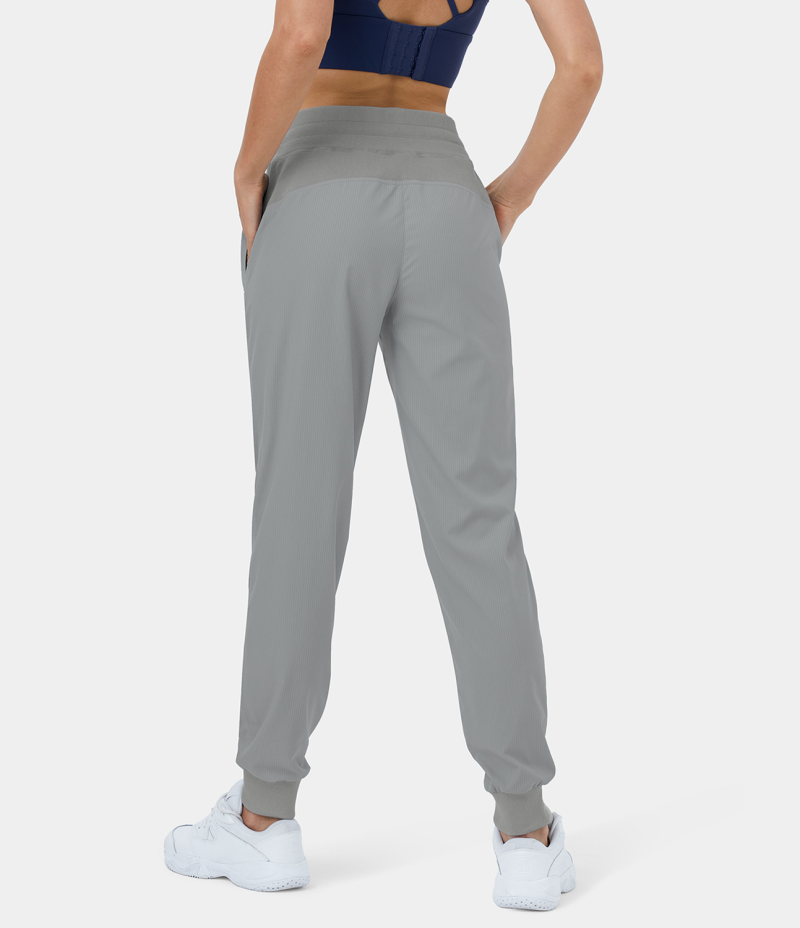 :: Halara Mid Rise Ribbed Drawstring Side Pocket Ruched Striped Casual Women's Jogger Grey | 950362-WVT