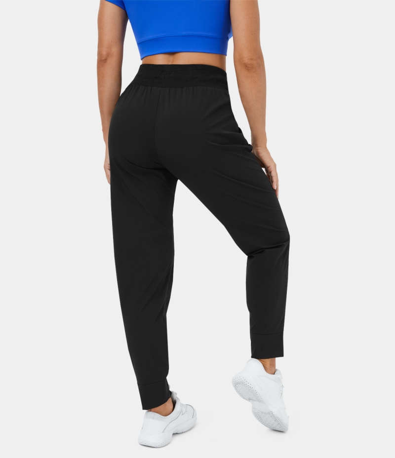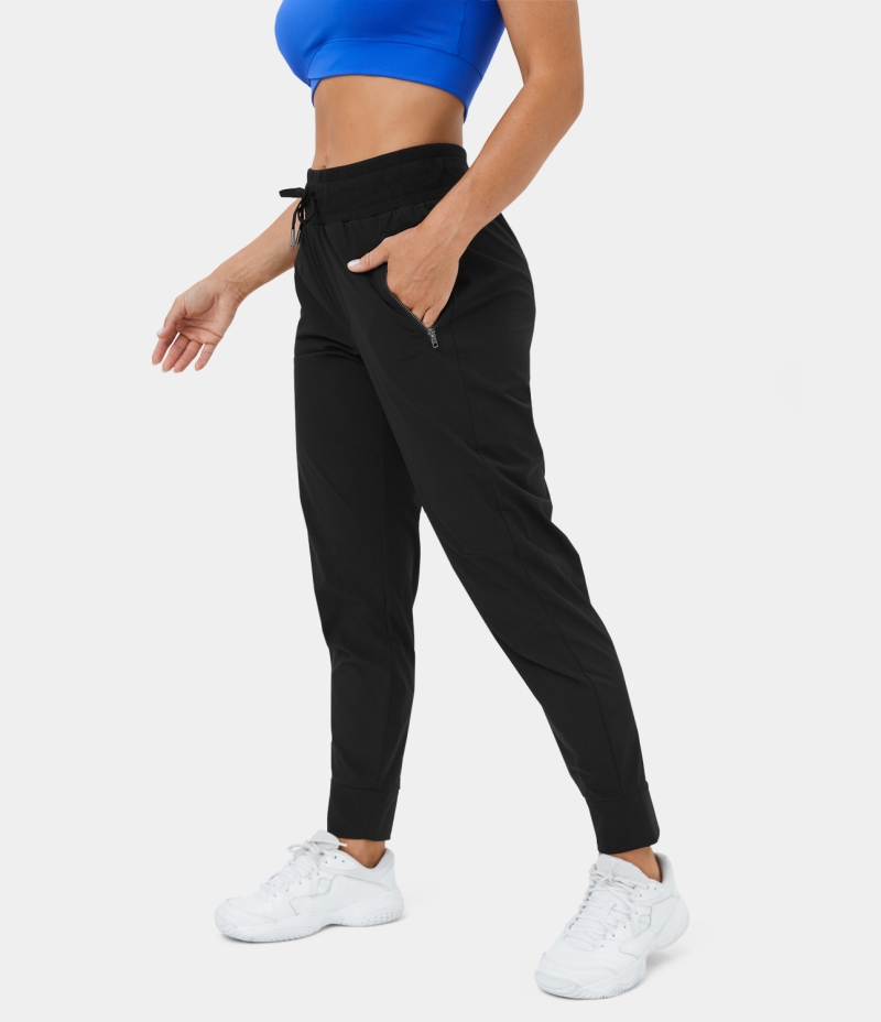 Halara Mid Rise Ribbed Drawstring Side Zip Pocket Casual Women's Jogger Black | 456283-KMW