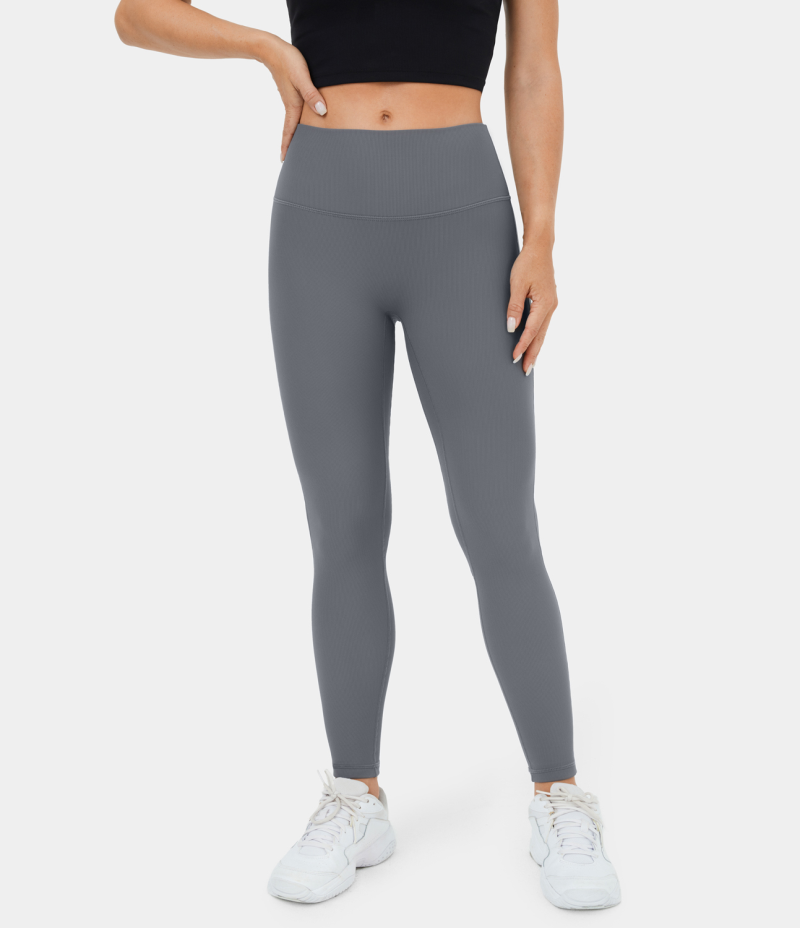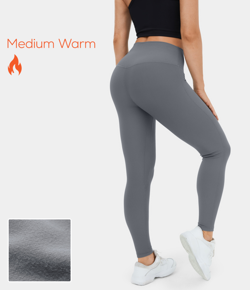 :: Halara Mid Rise Ribbed Knit Fleece Casual Women's Leggings Lava Smoke | 943512-UNB