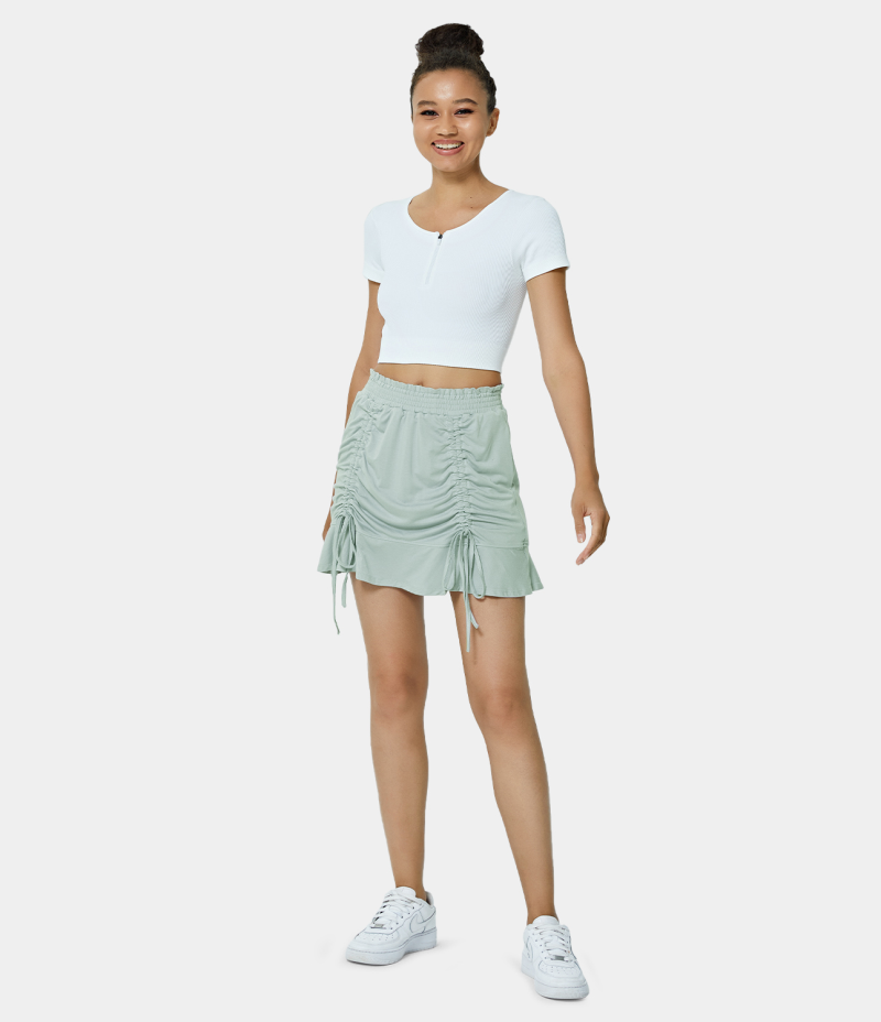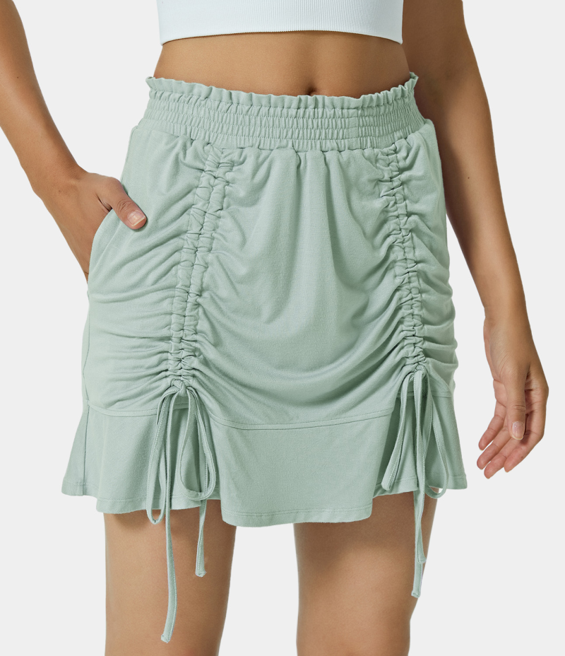 Halara Mid Rise Shirred Waist Drawstring Plain Women's Skirts Pistachio | JKYMQVG-84