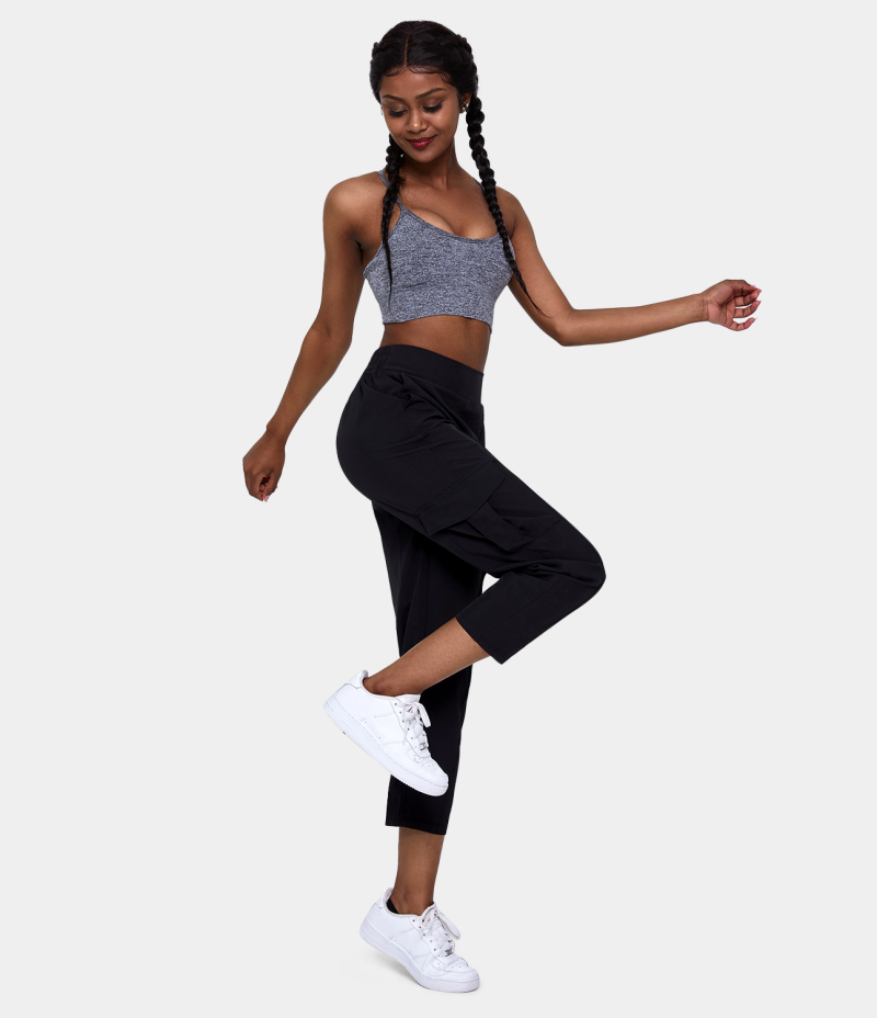 :: Halara Mid Rise Side Flap Pocket Plain Cargo Women's Pants Black | 712654-WMV