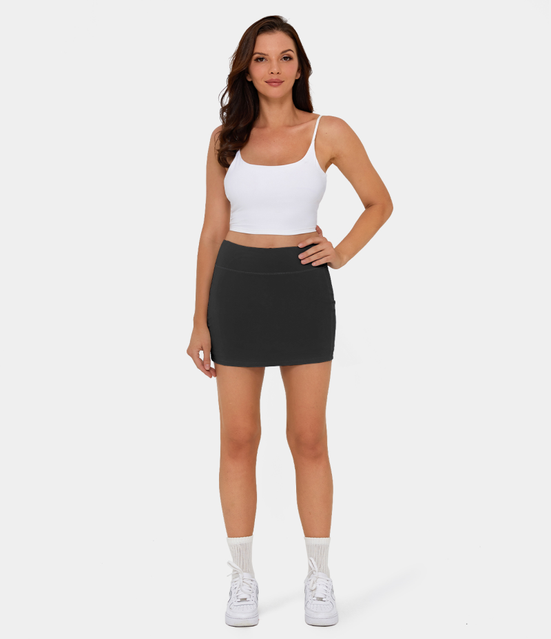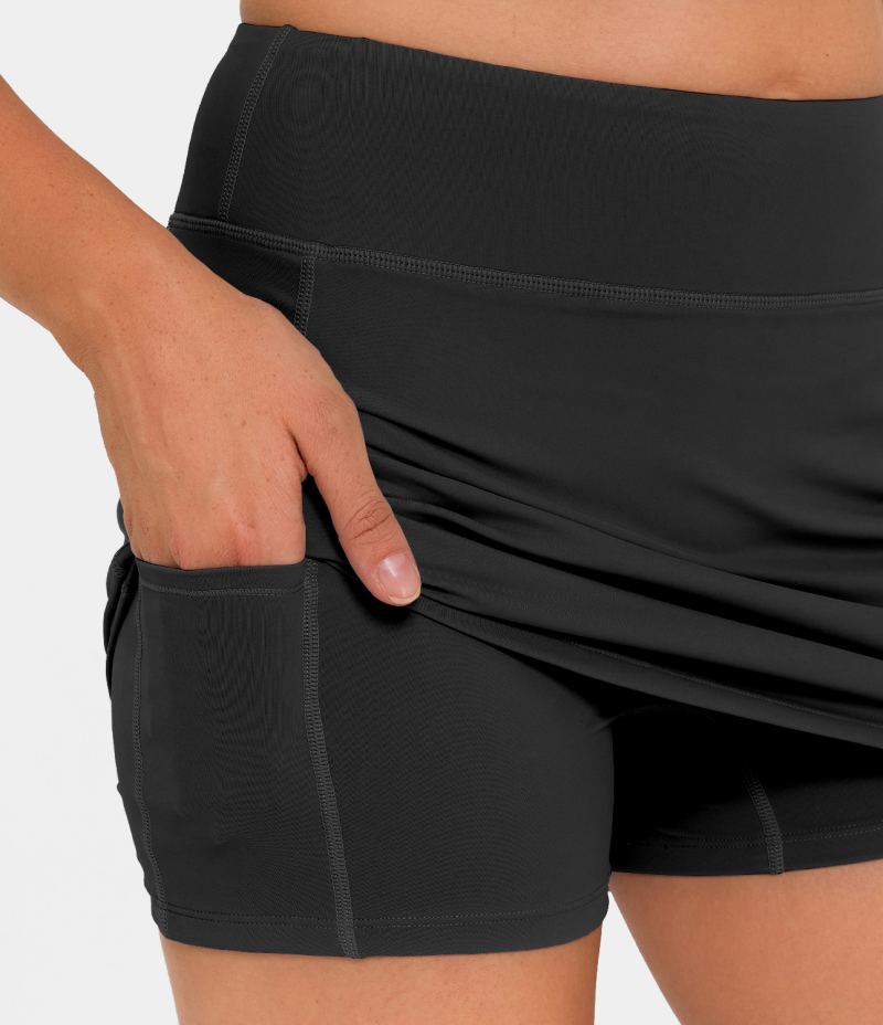 :: Halara Mid Rise Side Pocket 2-in-1 Women's Skirts Black | 617328-SMN