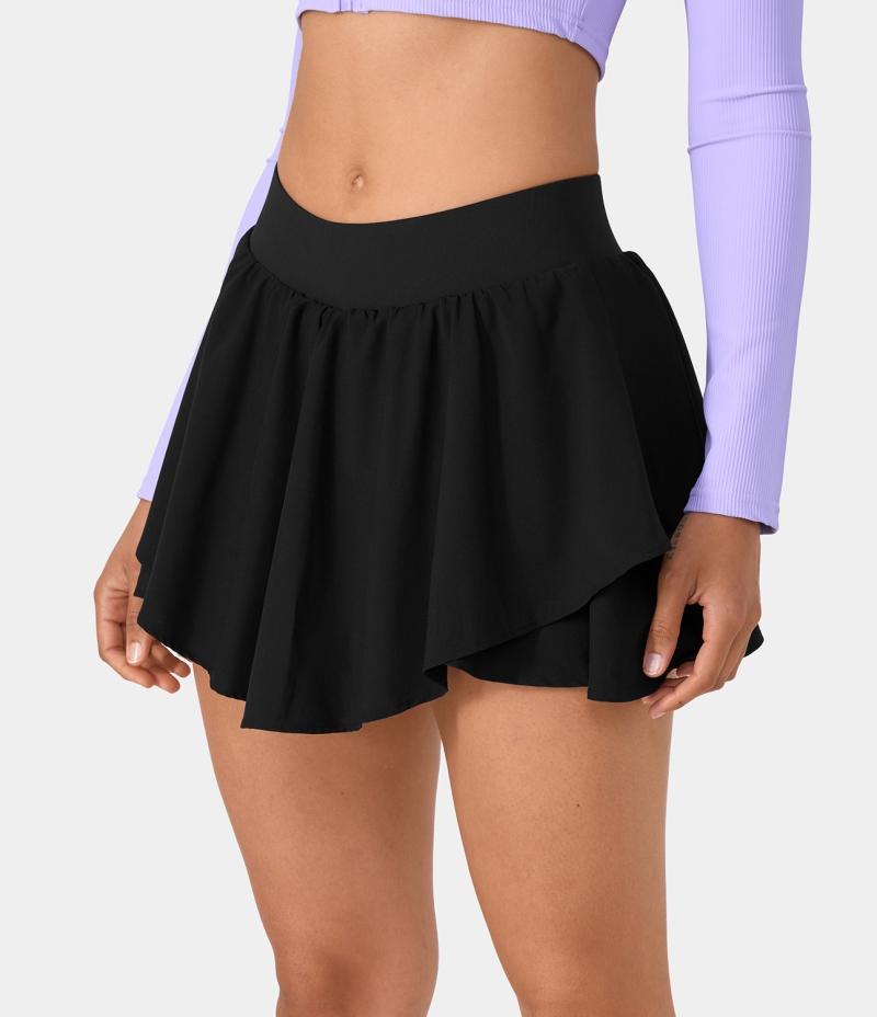 :: Halara Mid Rise Side Pocket Curved Hem 2-in-1 Tennis Women's Skirts Black | 094715-BPT