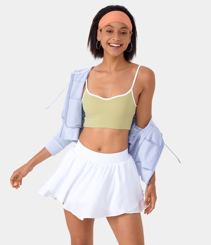:: Halara Mid Rise Side Pocket Curved Hem 2-in-1 Tennis Women's Skirts White | 789504-IXN