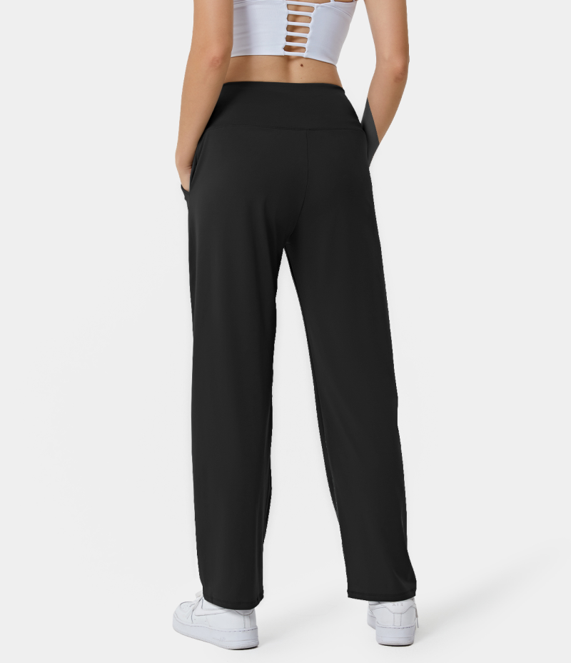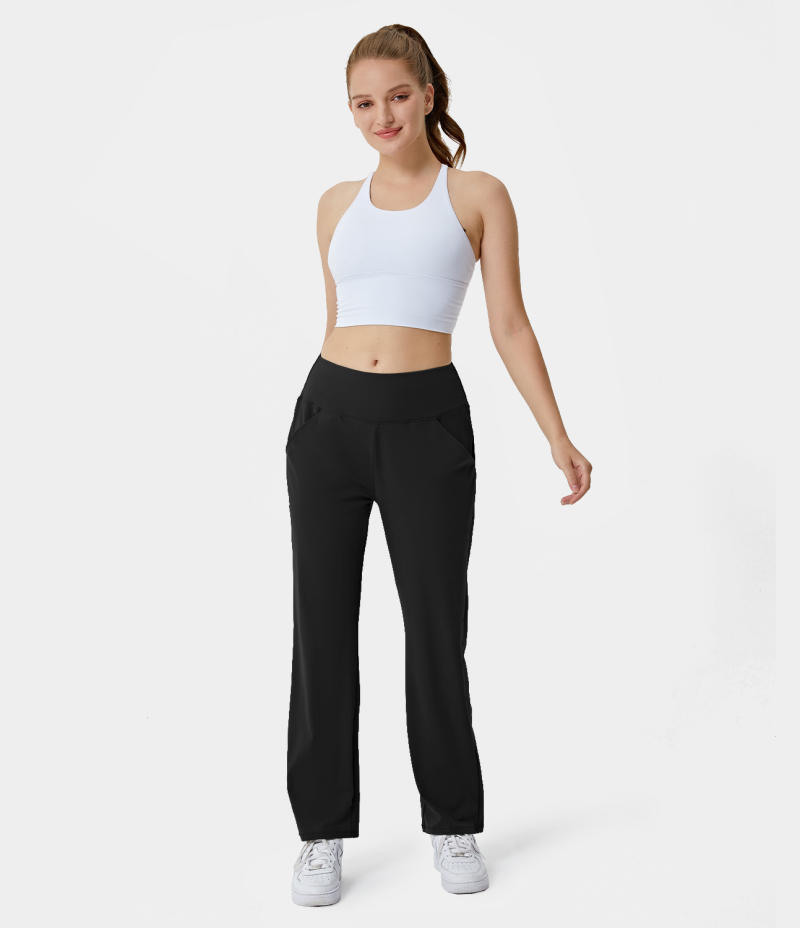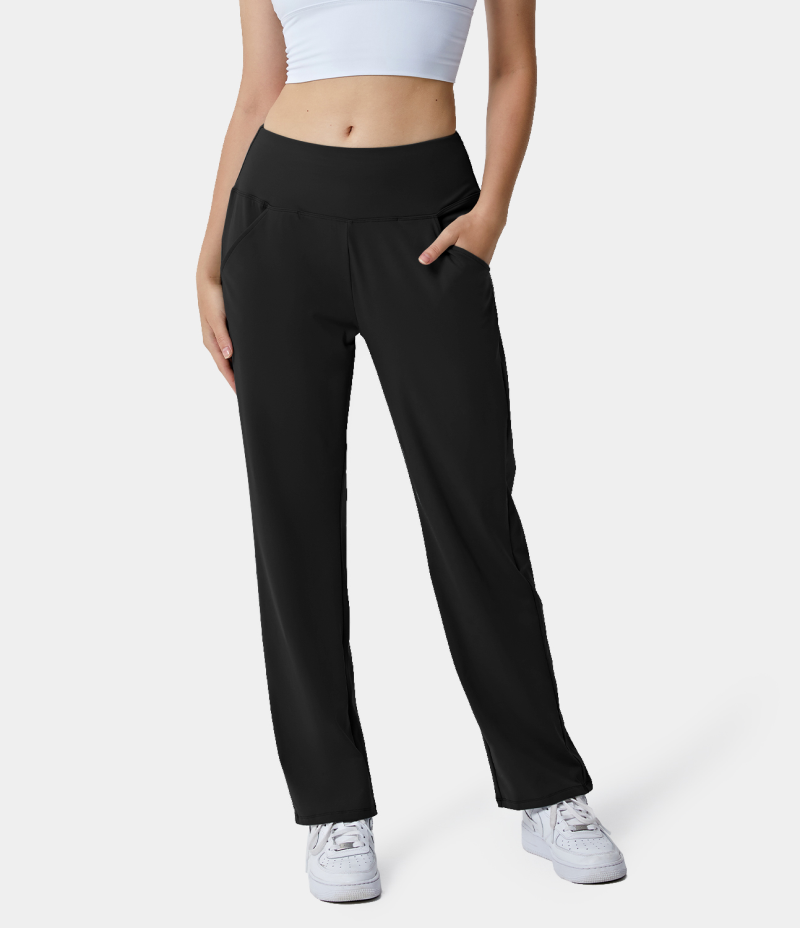 Halara Mid Rise Side Pocket Workout Straight Leg Women's Pants Black | 913065-KRF