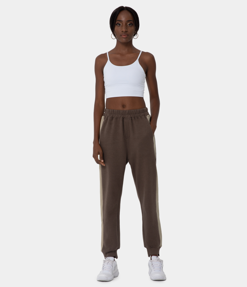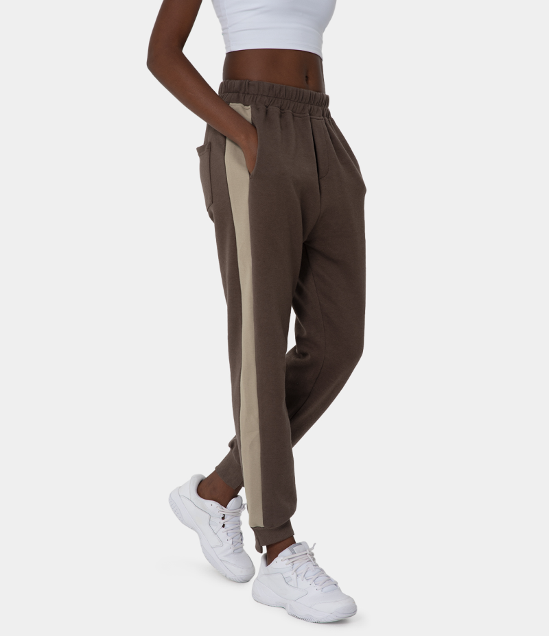 Halara Mid Rise Side Stripe Sporty Casual Warm Women's Sweatpants Coffee | PUXYHZJ-76