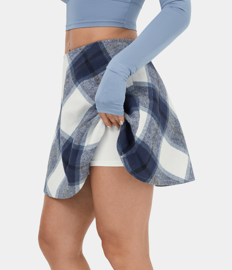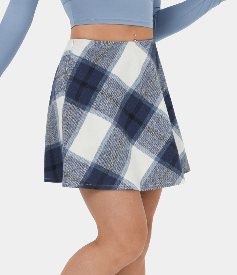 :: Halara Mid Rise Side Zipper A Line 2-in-1 Plaid Fleece Mini Casual Women's Skirts Blue Grey Plaid | 491362-BFM