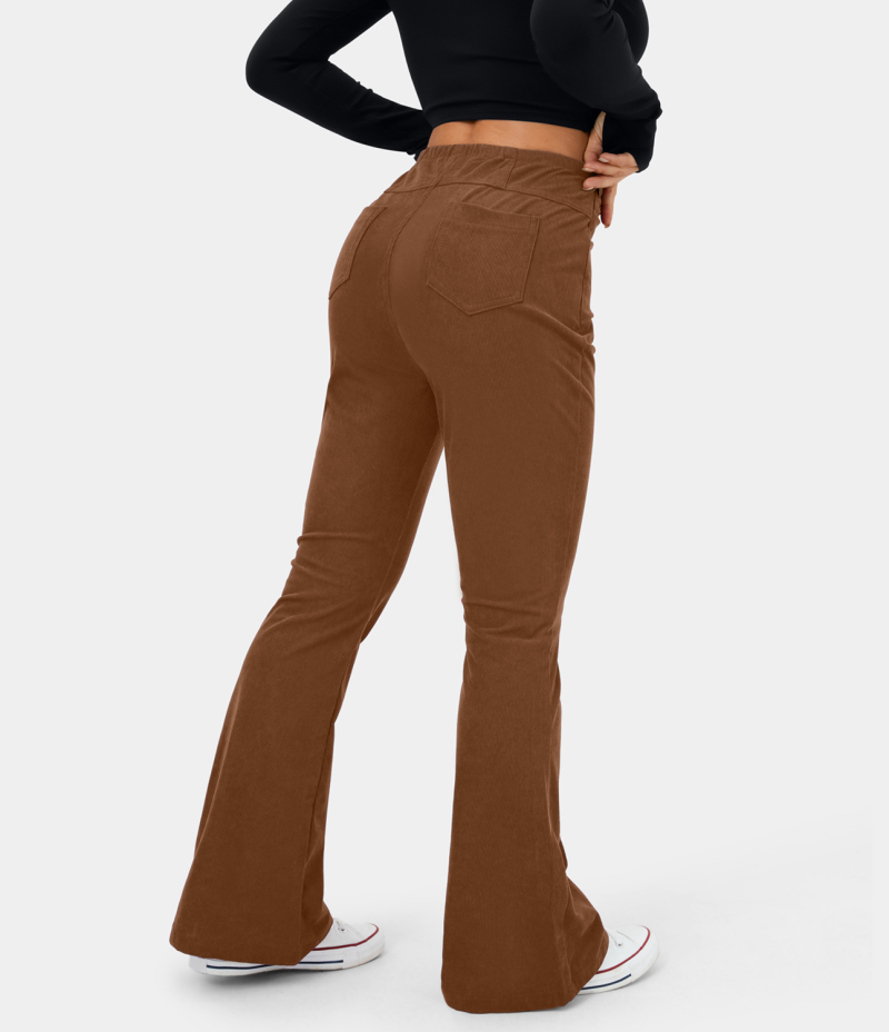 :: Halara Mid Rise Side Zipper Back Pocket Flare Casual Corduroy Women's Pants Cambridge Brown | 842750-ZVO