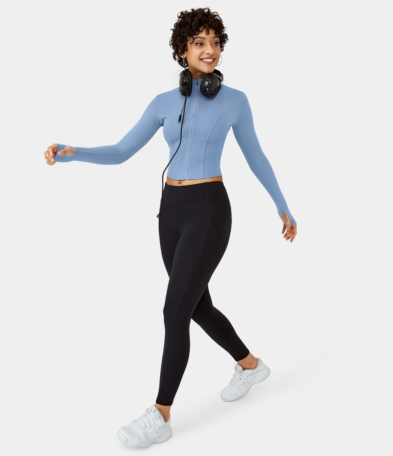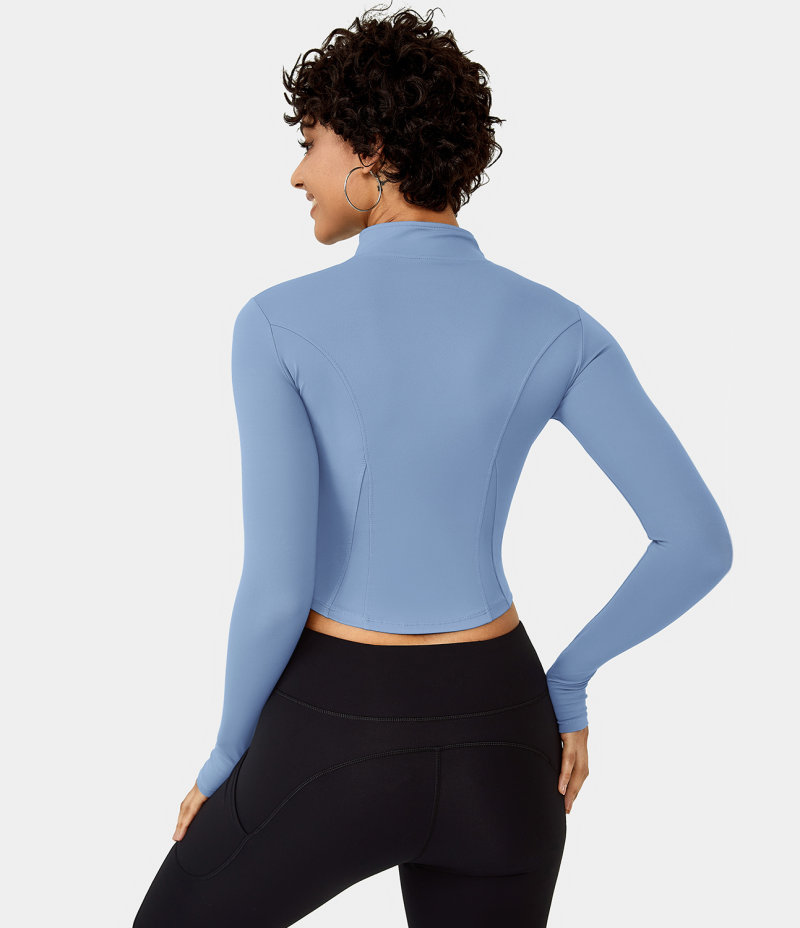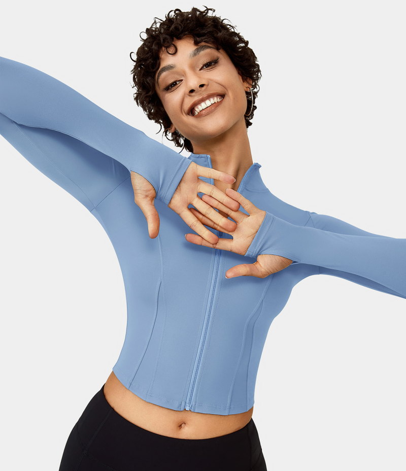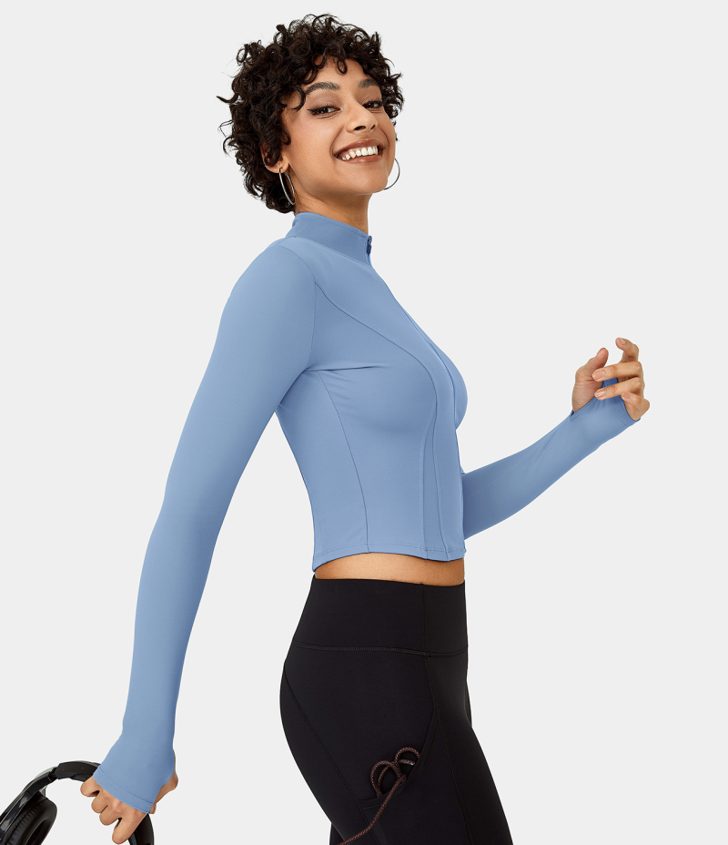 :: Halara Mock Neck Full Zip Thumb Hole Sports Jacket Women's Tops Light Sky Blue | MDAUSQP-17