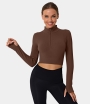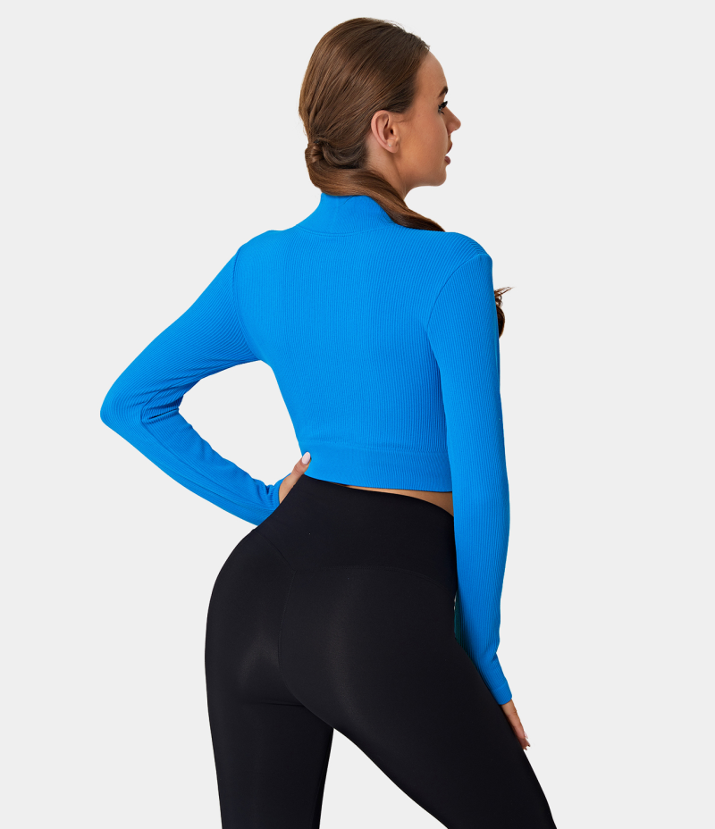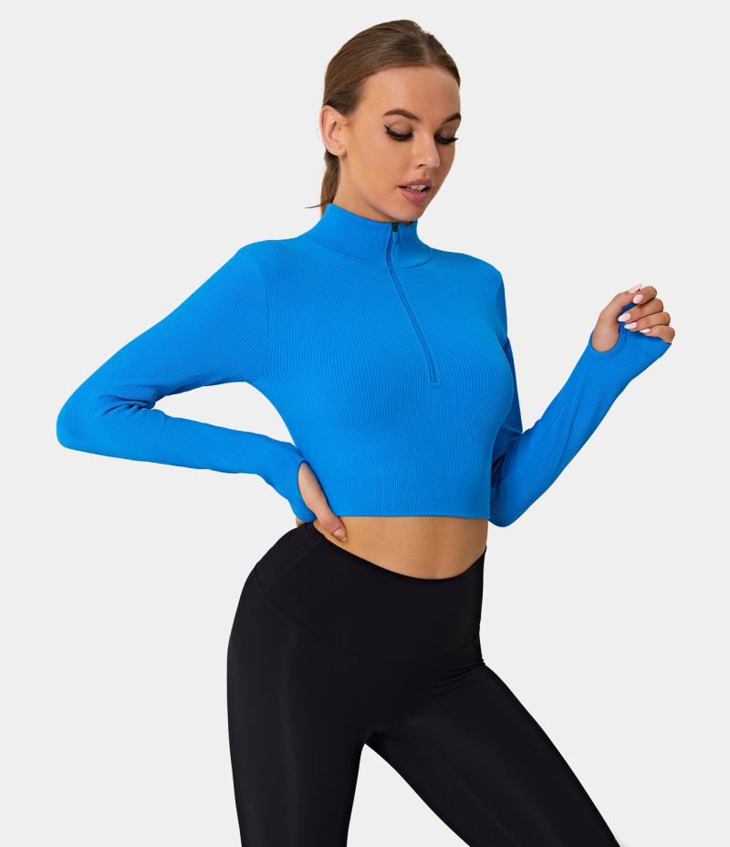 :: Halara Mock Neck Half Zip Thumb Hole Cropped Sports Women's Tops Blue | DPRHBIE-17