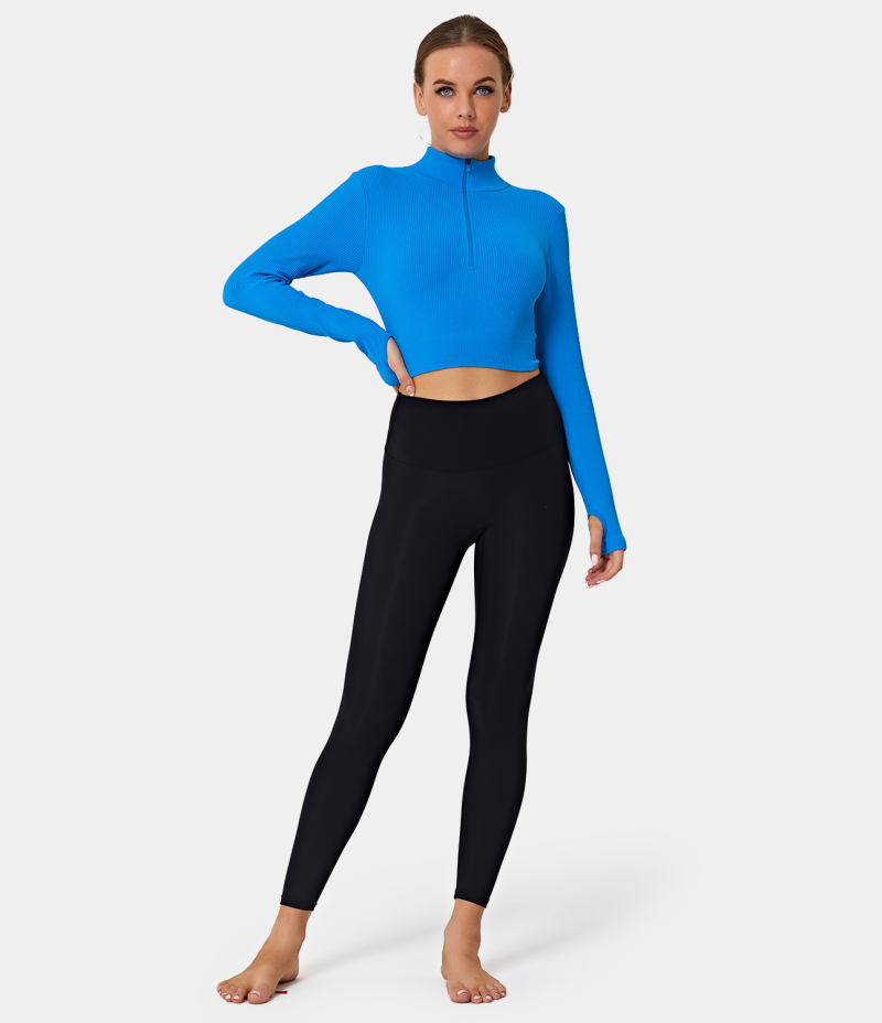 :: Halara Mock Neck Half Zip Thumb Hole Cropped Sports Women's Tops Blue | FTMZCIX-59