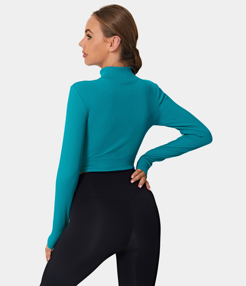 :: Halara Mock Neck Half Zip Thumb Hole Cropped Sports Women's Tops Pine Green | VQNRPWG-18