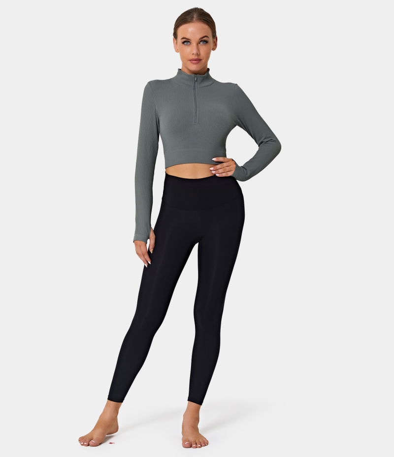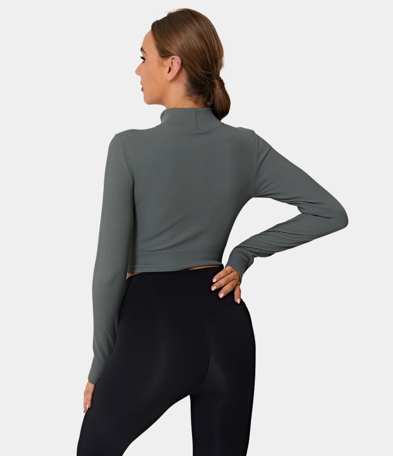 :: Halara Mock Neck Half Zip Thumb Hole Cropped Sports Women's Tops Slate Blue | QXAMCIF-46