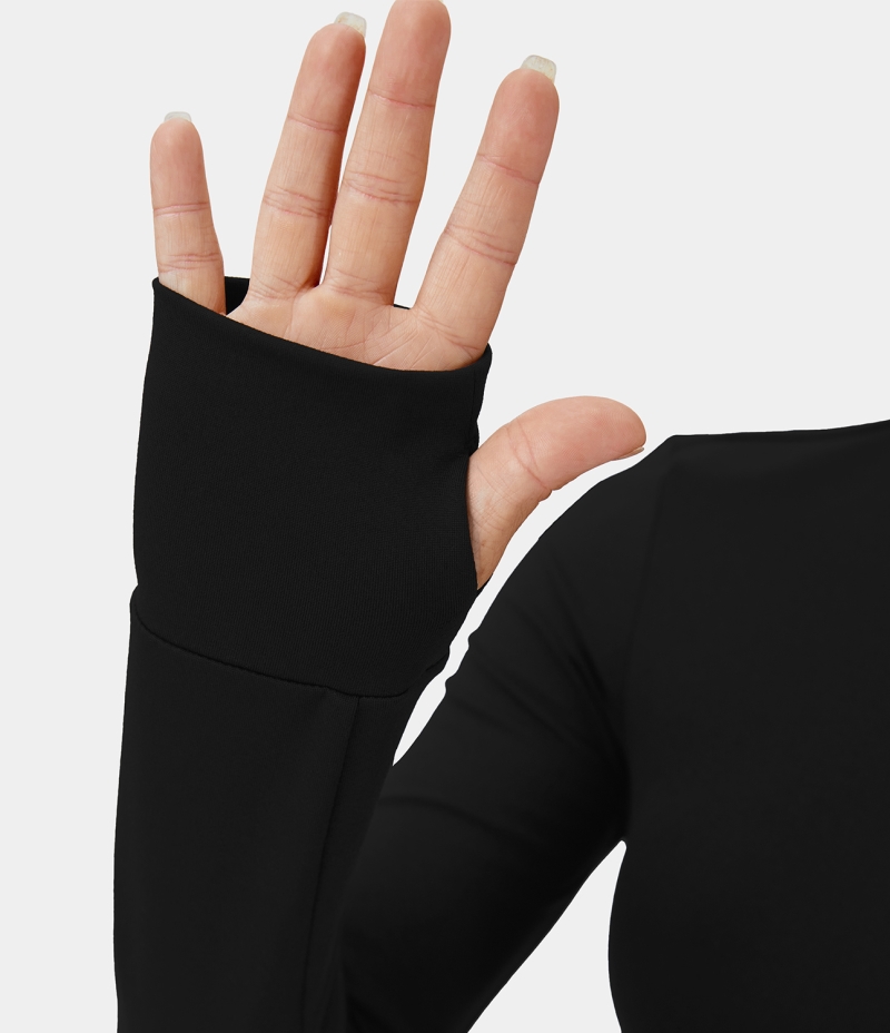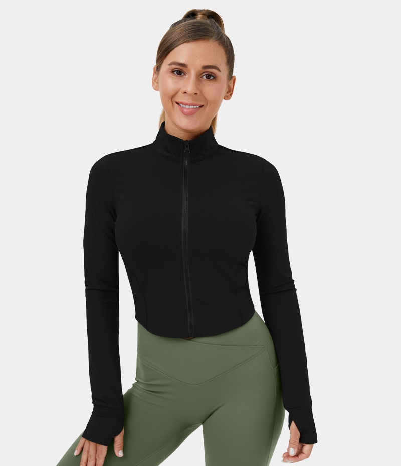 Halara Mock Neck Zip Front Thumb Hole Cropped Golf Jacket Women's Tops Black | JPSAXTU-69